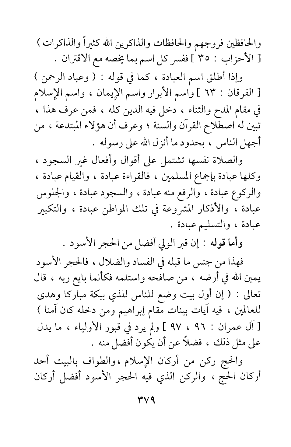 وإذا أطلق اسم العبادة، كما في قوله: {وَعِبَادُ الرَّحْمَنِ} [سورة الفرقان آية: 63] ، واسم الأبرار، واسم الإيمان، واسم الإسلام، في مقام المدح والثناء، دخل فيه الدين كله؛ فمن عرف هذا، تبين له اصطلاح القرآن والسنة، وعرف أن هؤلاء المبتدعة، من أجهل الناس، بحدود ما أنزل الله على رسوله.