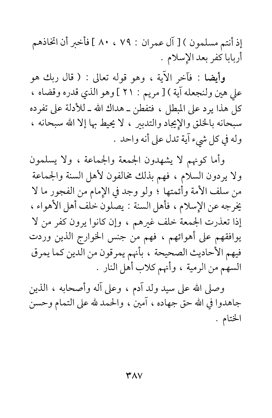 وصلى الله على سيد ولد آدم، وعلى آله وأصحابه، الذين جاهدوا في الله حق جهاده، آمين، والحمد لله على التمام وحسن الختام.