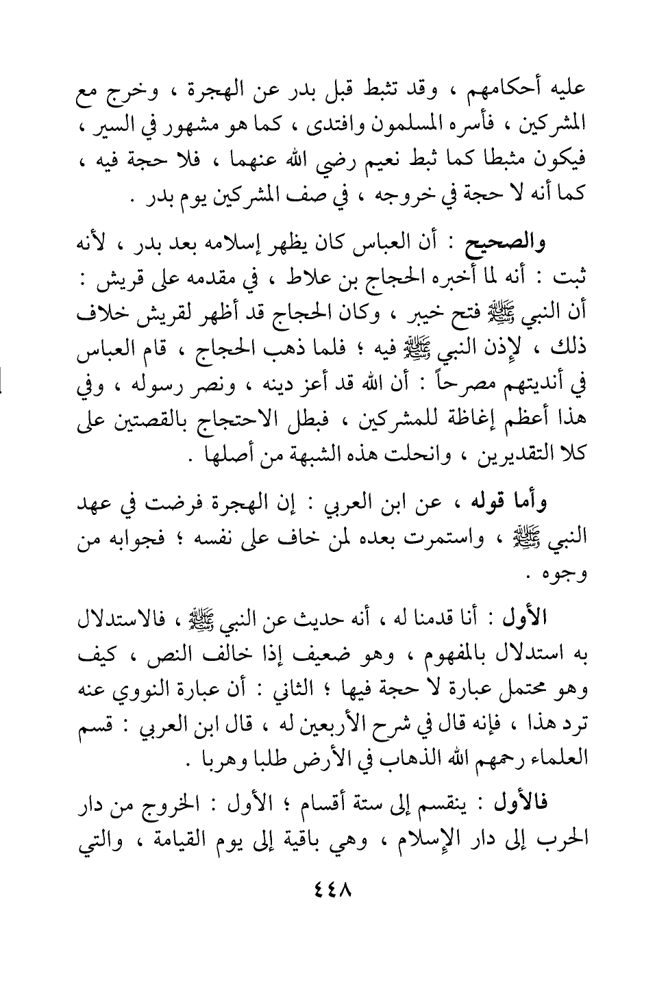 وأما قوله عن ابن العربي: إن الهجرة فرضت في عهد النبي صلى الله عليه وسلم واستمرت بعده لمن خاف على نفسه، فجوابه من وجوه: