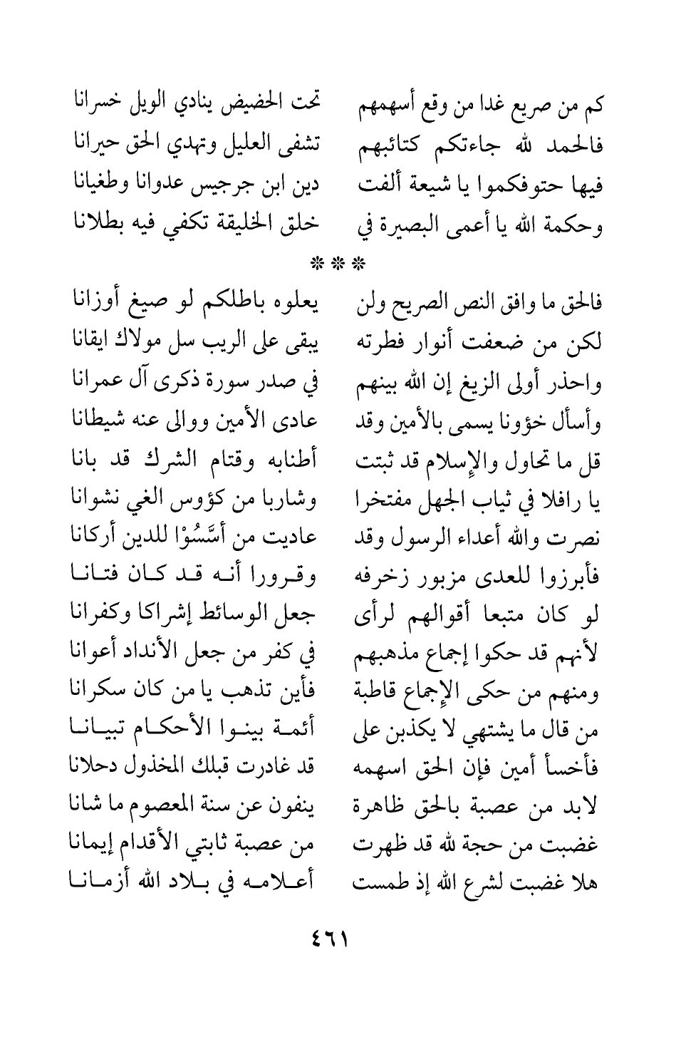 هلا غضبت لشرع الله إذ طمست ... أعلامه في بلاد الله أزمانا