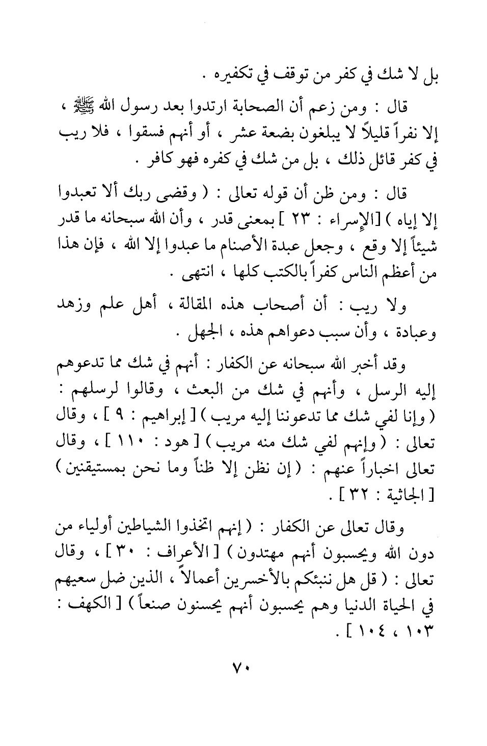 بل لا شك في كفر من توقف في تكفيره.