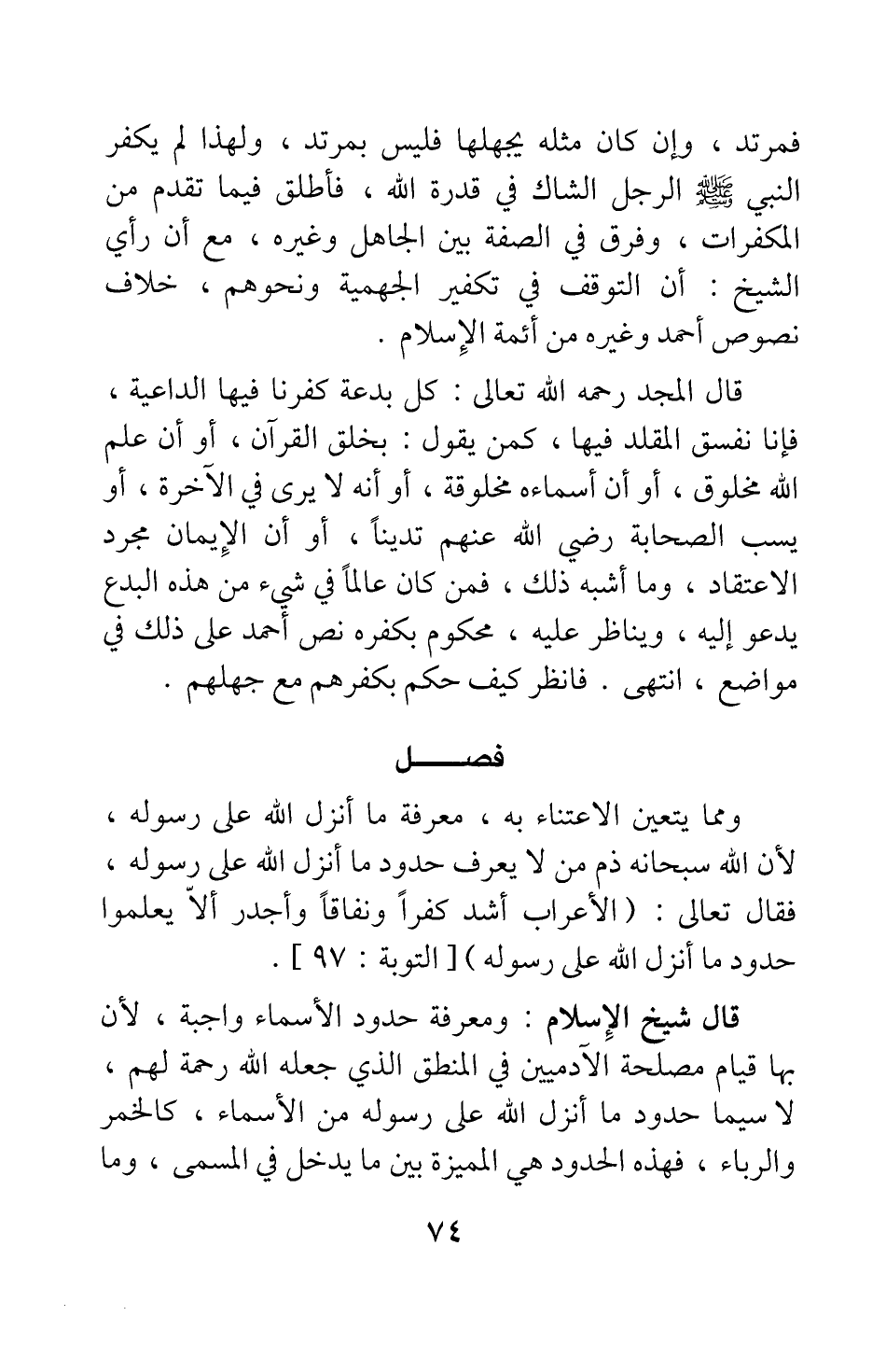 ومما يتعين الاعتناء به، معرفة ما أنزل الله على رسوله، لأن الله سبحانه ذم من لا يعرف حدود ما أنزل الله على رسوله، فقال تعالى: {الأَعْرَابُ أَشَدُّ كُفْراً وَنِفَاقاً وَأَجْدَرُ أَلاَّ يَعْلَمُوا حُدُودَ مَا أَنْزَلَ اللَّهُ عَلَى رَسُولِهِ} [سورة التوبة آية: 97] .