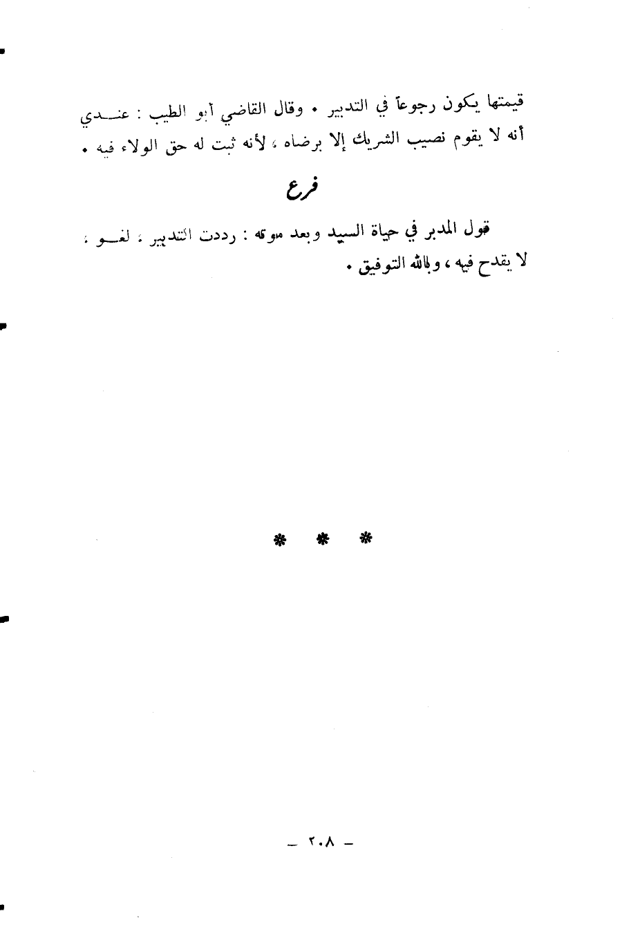 قَوْلُ الْمُدَبَّرِ فِي حَيَاةِ السَّيِّدِ وَبَعْدَ مَوْتِهِ: رَدَدْتُ التَّدْبِيرَ - لَغْوٌ، لَا يَقْدَحُ فِيهِ، وَبِاللَّهِ التَّوْفِيقُ.