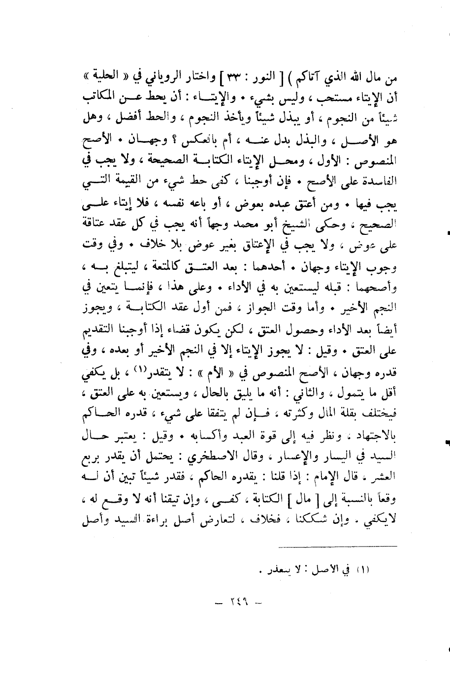 [النُّورِ: 33] وَاخْتَارَ الرُّويَانِيُّ فِي «الْحِلْيَةِ» أَنَّ الْإِيتَاءَ مُسْتَحَبٌّ، وَلَيْسَ بِشَيْءٍ.