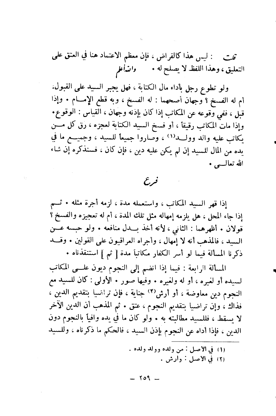الْمَسْأَلَةُ الرَّابِعَةُ: فِيمَا إِذَا انْضَمَّ إِلَى النُّجُومِ دُيُونٌ عَلَى الْمُكَاتَبِ لِسَيِّدِهِ أَوْ لِغَيْرِهِ، أَوْ لَهُ وَلِغَيْرِهِ. وَفِيهَا صُوَرٌ.
