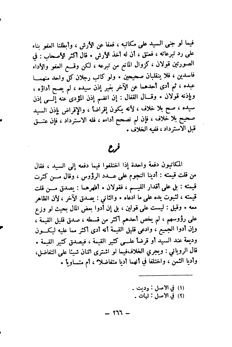 وَالثَّانِي: يُصَدَّقُ الْآخَرُ؛ لِأَنَّ الظَّاهِرَ مَعَهُ. وَقِيلَ: لَيْسَتْ عَلَى قَوْلَيْنِ، بَلْ إِنْ أَدَّوْا بَعْضَ الْمَالِ بِحَيْثُ لَوْ وُزِّعَ عَلَى رُءُوسِهِمْ، لَمْ يَخُصَّ أَحَدَهُمْ أَكْثَرُ مِنْ قِسْطِهِ، صُدِّقَ قَلِيلُ الْقِيمَةِ، وَإِنْ أَدَّوُا الْجَمِيعَ، وَادَّعَى قَلِيلُ الْقِيمَةِ أَنَّهُ أَدَّى أَكْثَرَ مِمَّا عَلَيْهِ لِيَكُونَ وَدِيعَةً عِنْدَ السَّيِّدِ أَوْ قَرْضًا عَلَى كَثِيرِ الْقِيمَةِ، فَيُصَدَّقُ كَثِيرُ الْقِيمَةِ.