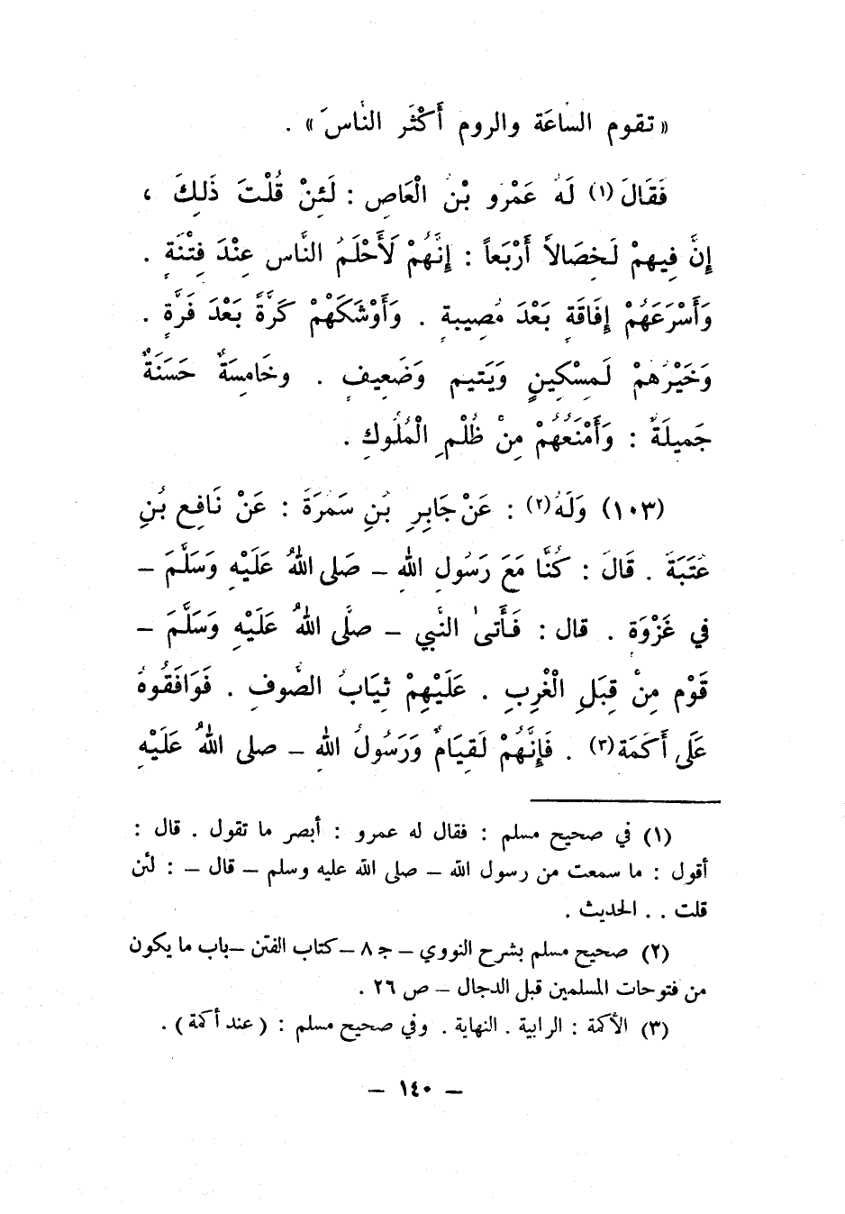 2 صحيح مسلم، بشرح النّووي، ج 8، كتاب الفتن، باب ما يكون من فتوحات المسلمين قبل الدّجّال ص: 26.