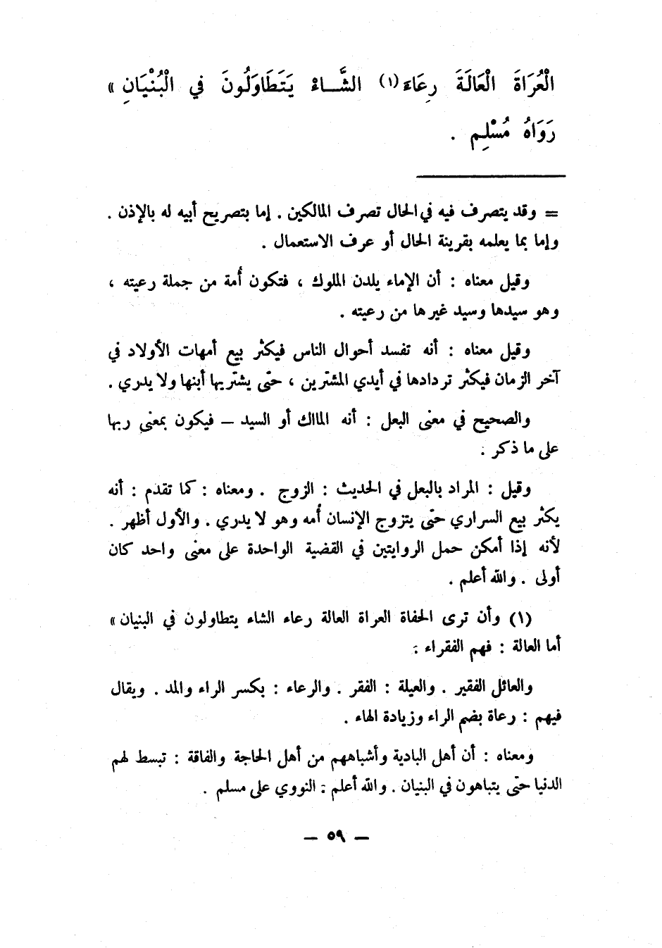 الْعَالَةَرِعَاءَ1 الشَّاءِ يَتَطَاوَلُونَ فِي الْبُنْيَانِ". رواه مسلم.