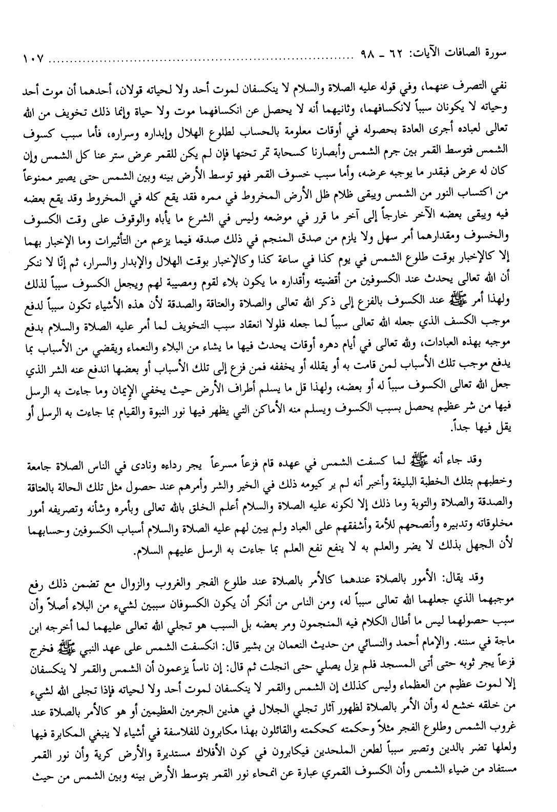 وأن الأمر بالصلاة لظهور آثار تجلي الجلال في هذين الجرمين العظيمين أو هو كالأمر بالصلاة عند غروب الشمس وطلوع الفجر مثلا وحكمته كحكمته والقائلون بهذا مكابرون للفلاسفة في أشياء لا ينبغي المكابرة فيها ولعلها تضر بالدين وتصير سببا لطعن الملحدين فيكابرون في كون الأفلاك مستديرة والأرض كرية وأن نور القمر مستفاد من ضياء الشمس وأن الكسوف القمري عبارة عن انمحاء نور القمر بتوسط الأرض بينه وبين الشمس من حيث