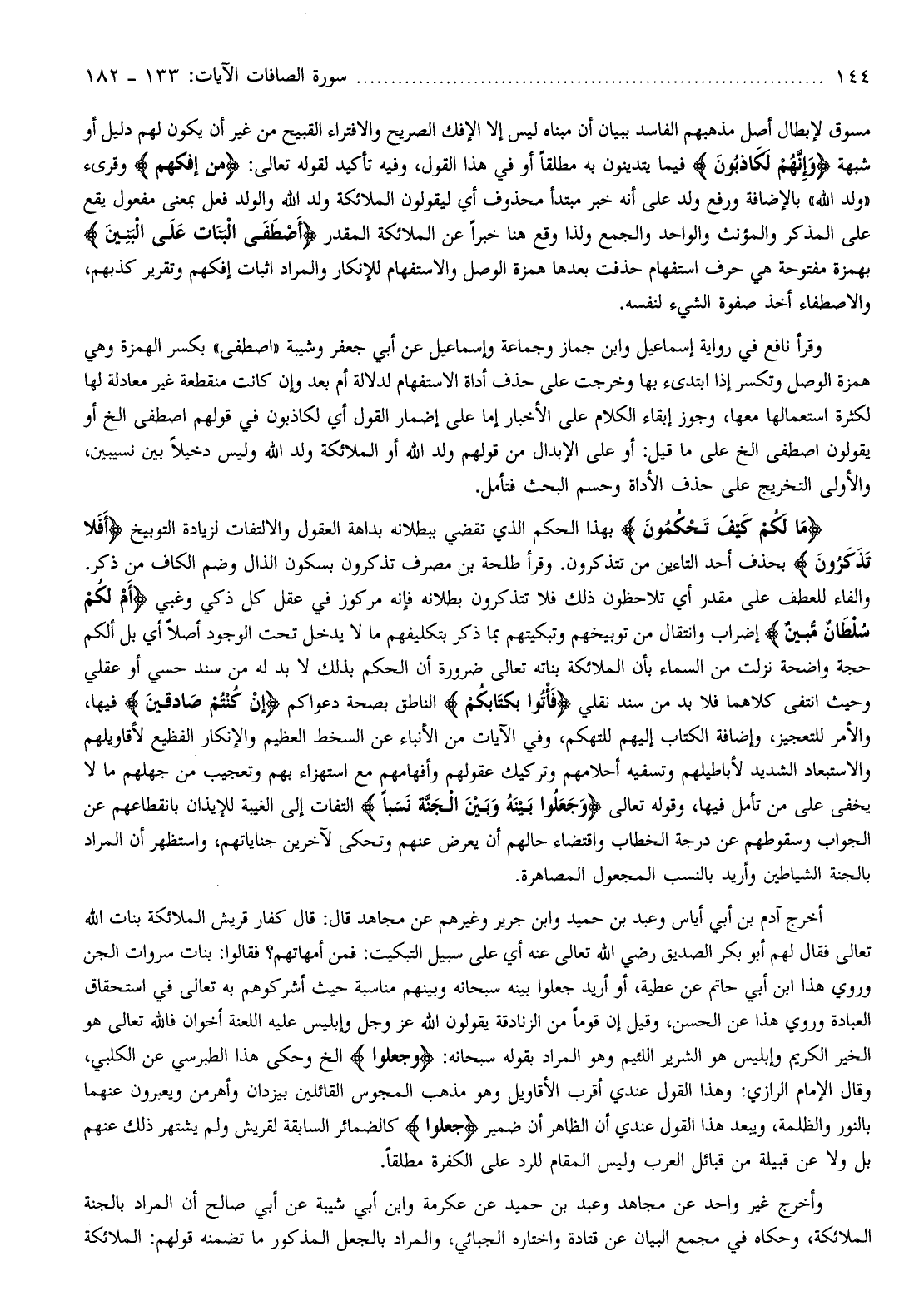 وأخرج غير واحد عن مجاهد وعبد بن حميد عن عكرمة وابن أبي شيبة عن أبي صالح أن المراد بالجنة الملائكة، وحكاه في مجمع البيان عن قتادة واختاره الجبائي، والمراد بالجعل المذكور ما تضمنه قولهم: الملائكة