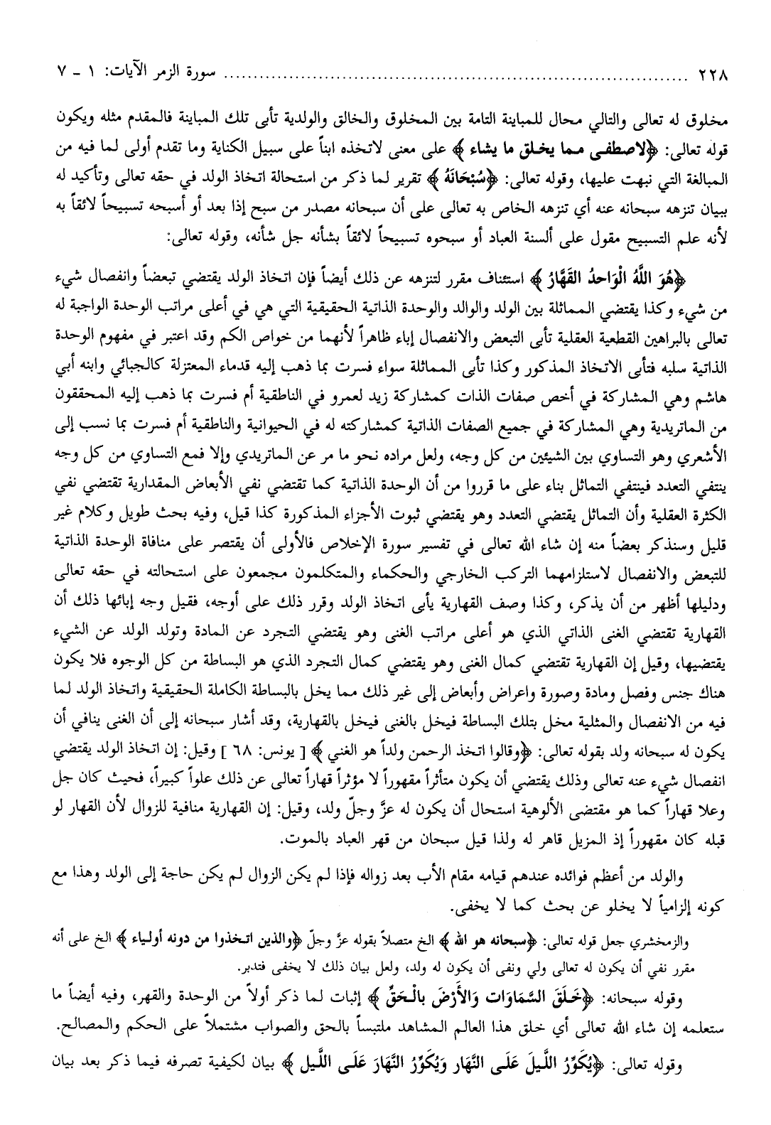 مخلوق له تعالى والتالي محال للمباينة التامة بين المخلوق والخالق والولدية تأبى تلك المباينة فالمقدم مثله ويكون قوله تعالى: لَاصْطَفى مِمَّا يَخْلُقُ ما يَشاءُ على معنى لاتخذه ابنا على سبيل الكناية وما تقدم أولى لما فيه من المبالغة التي نبهت عليها، وقوله تعالى: سُبْحانَهُ تقرير لما ذكر من استحالة اتخاذ الولد في حقه تعالى وتأكيد له ببيان تنزهه سبحانه عنه أي تنزهه الخاص به تعالى على أن سبحانه مصدر من سبح إذا بعد أو أسبحه تسبيحا لائقا به لأنه علم التسبيح مقول على ألسنة العباد أو سبحوه تسبيحا لائقا بشأنه جل شأنه، وقوله تعالى: