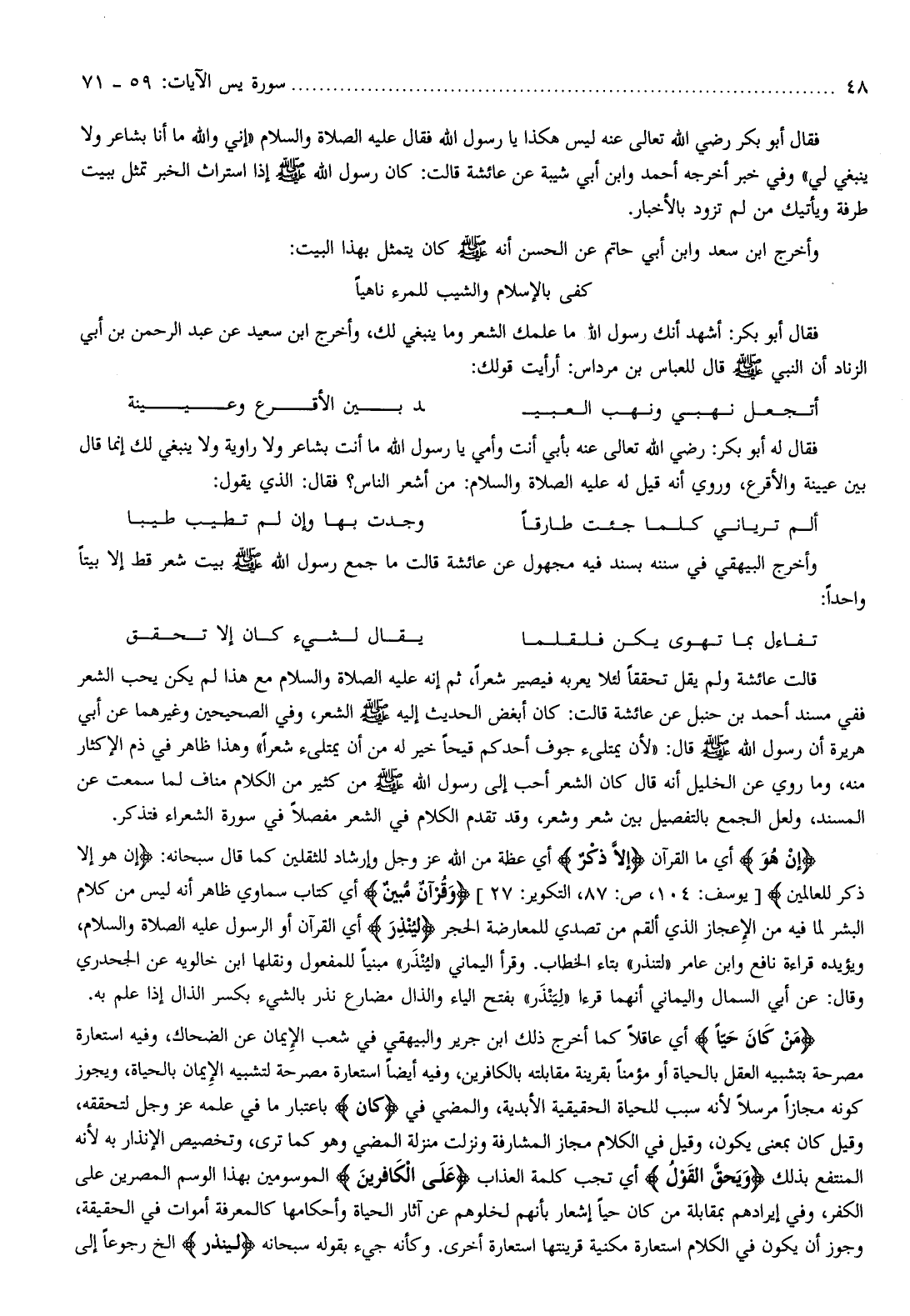 فقال أبو بكر: أشهد أنك رسول الله ما علمك الشعر وما ينبغي لك،