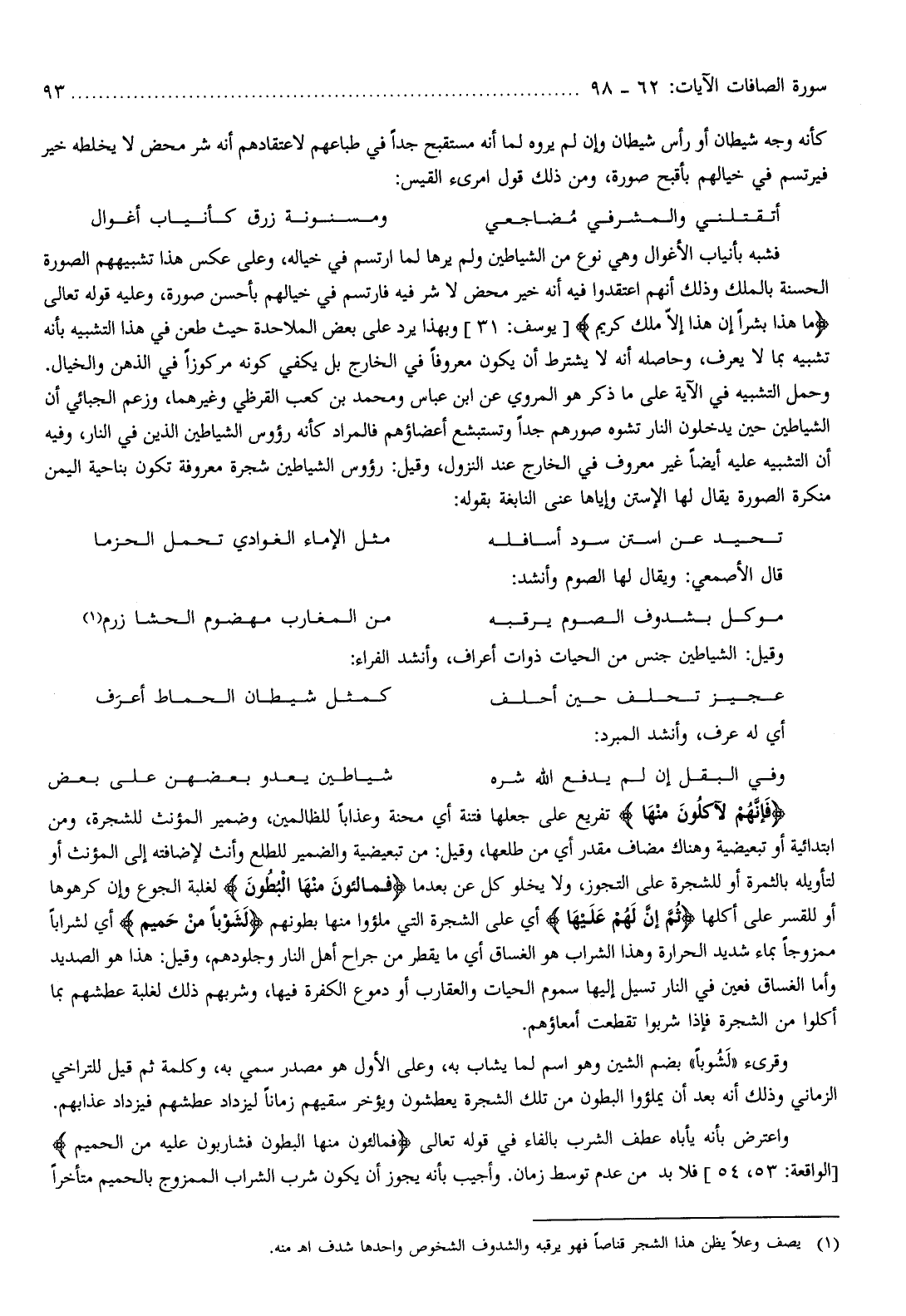وحمل التشبيه في الآية على ما ذكر هو المروي عن ابن عباس ومحمد بن كعب القرظي وغيرهما، وزعم الجبائي أن الشياطين حين يدخلون النار تشوه صورهم جدا وتستبشع أعضاؤهم فالمراد كأنه رؤوس الشياطين الذين في النار، وفيه أن التشبيه عليه أيضا غير معروف في الخارج عند النزول، وقيل: رؤوس الشياطين شجرة معروفة تكون بناحية اليمن منكرة الصورة يقال لها الأستن وإياها عنى النابغة بقوله: