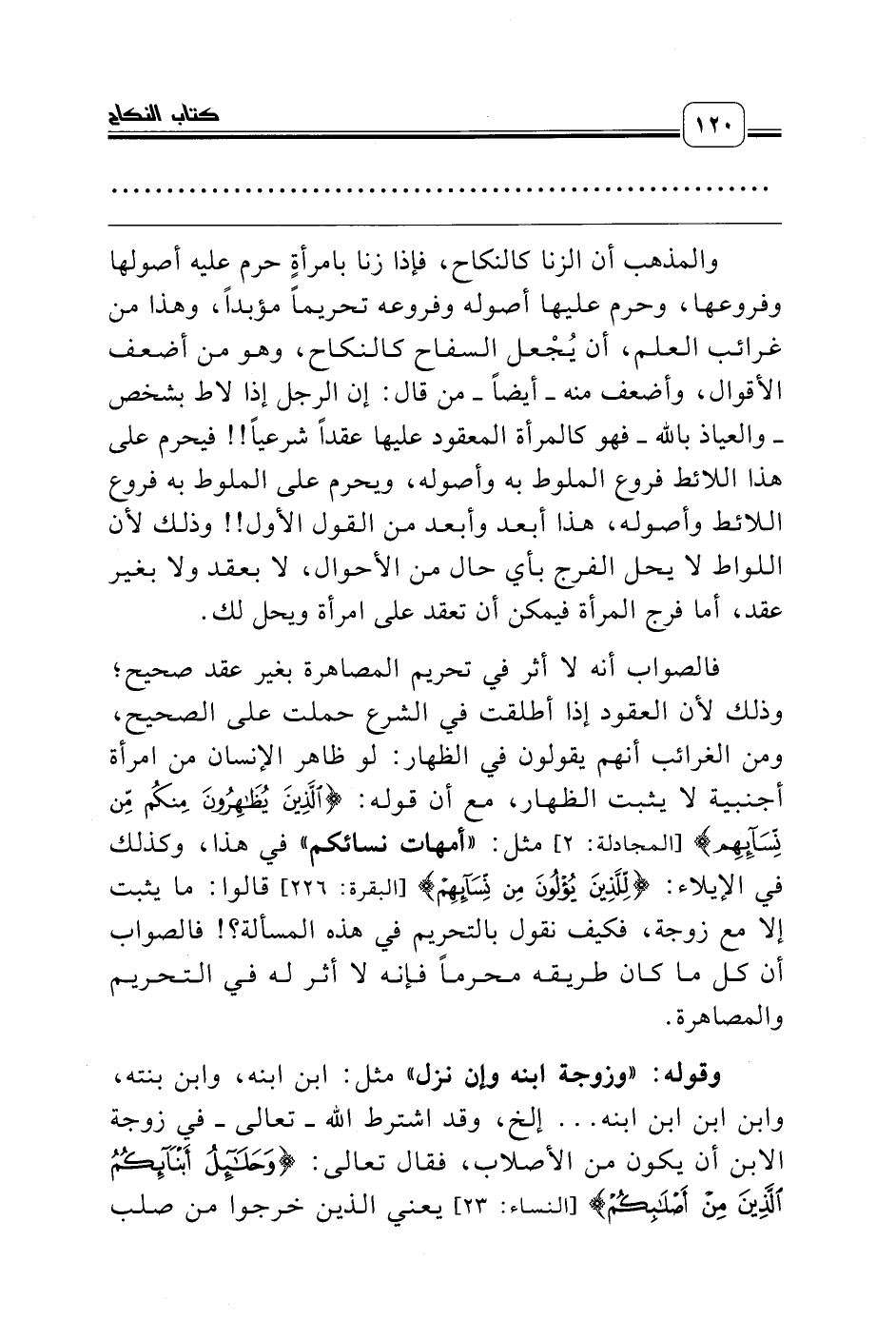 والمذهب أن الزنا كالنكاح، فإذا زنا بامرأةٍ حرم عليه أصولها وفروعها، وحرم عليها أصوله وفروعه تحريماً مؤبداً، وهذا من غرائب العلم، أن يُجْعل السفاح كالنكاح، وهو من أضعف الأقوال، وأضعف منه ـ أيضاً ـ من قال: إن الرجل إذا لاط بشخص ـ والعياذ بالله ـ فهو كالمرأة المعقود عليها عقداً شرعياً!! فيحرم على هذا اللائط فروع الملوط به وأصوله، ويحرم على الملوط به فروع اللائط وأصوله، هذا أبعد وأبعد من القول الأول!! وذلك لأن اللواط لا يحل الفرج بأي حال من الأحوال، لا بعقد ولا بغير عقد، أما فرج المرأة فيمكن أن تعقد على امرأة ويحل لك.