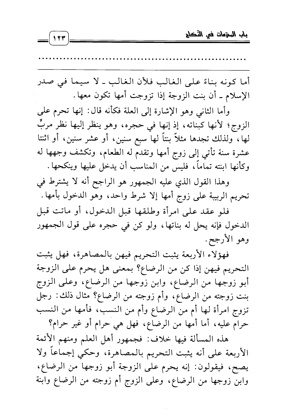 وهذا القول الذي عليه الجمهور هو الراجح أنه لا يشترط في تحريم الربيبة على زوج أمها إلا شرط واحد، وهو الدخول بأمها.