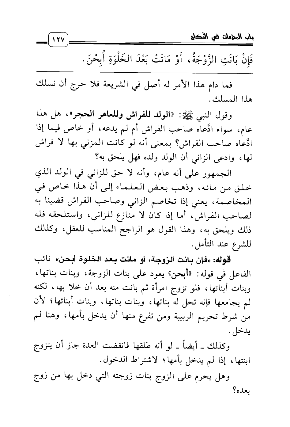 قوله: «فإن بانت الزوجة، أو ماتت بعد الخلوة أبحن» نائب الفاعل في قوله: «أبحن» يعود على بنات الزوجة، وبنات بناتها، وبنات أبنائها، فلو تزوج امرأة ثم بانت منه بعد أن خلا بها، لكنه لم يجامعها فإنه تحل له بناتها، وبنات بناتها، وبنات أبنائها؛ لأن من شرط تحريم الربيبة ومن تفرع منها أن يدخل بأمها، وهنا لم يدخل.