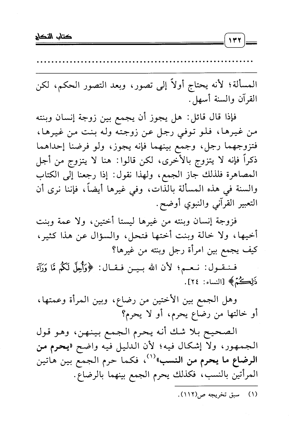 فإذا قال قائل: هل يجوز أن يجمع بين زوجة إنسان وبنته من غيرها، فلو توفي رجل عن زوجته وله بنت من غيرها، فتزوجهما رجل، وجمع بينهما فإنه يجوز، ولو فرضنا إحداهما ذكراً فإنه لا يتزوج بالأخرى، لكن قالوا: هنا لا يتزوج من أجل المصاهرة فلذلك جاز الجمع، ولهذا نقول: إذا رجعنا إلى الكتاب والسنة في هذه المسألة بالذات، وفي غيرها أيضاً، فإننا نرى أن التعبير القرآني والنبوي أوضح.