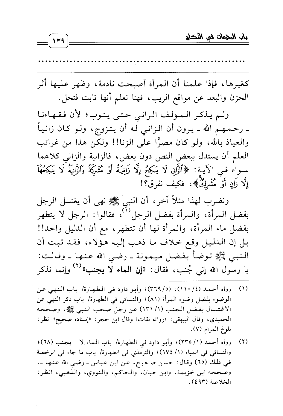 (¬2) رواه أحمد (1/ 235)؛ وأبو داود في الطهارة/ باب الماء لا يجنب (68)؛ والنسائي في المياه (1/ 174)؛ والترمذي في الطهارة/ باب ما جاء في الرخصة في ذلك (65) وقال: حسن صحيح، عن ابن عباس ـ رضي الله عنها ـ. وصححه ابن خزيمة، وابن حبان، والحاكم، والنووي، والذهبي، انظر: الخلاصة (493).