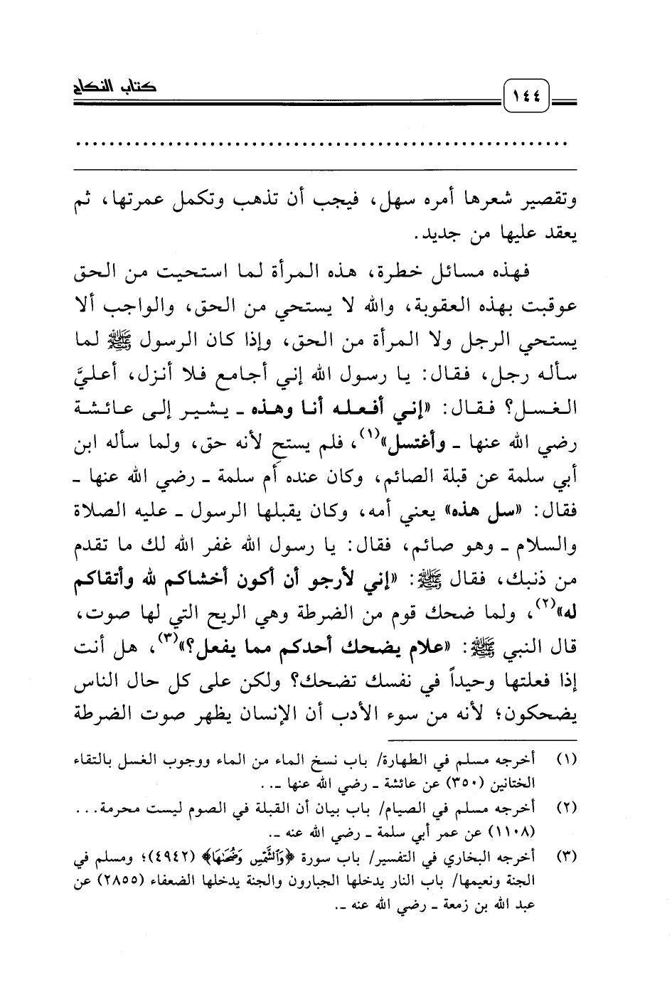 (¬1) أخرجه مسلم في الطهارة/ باب نسخ الماء من الماء ووجوب الغسل بالتقاء الختانين (350) عن عائشة ـ رضي الله عنها ـ ..