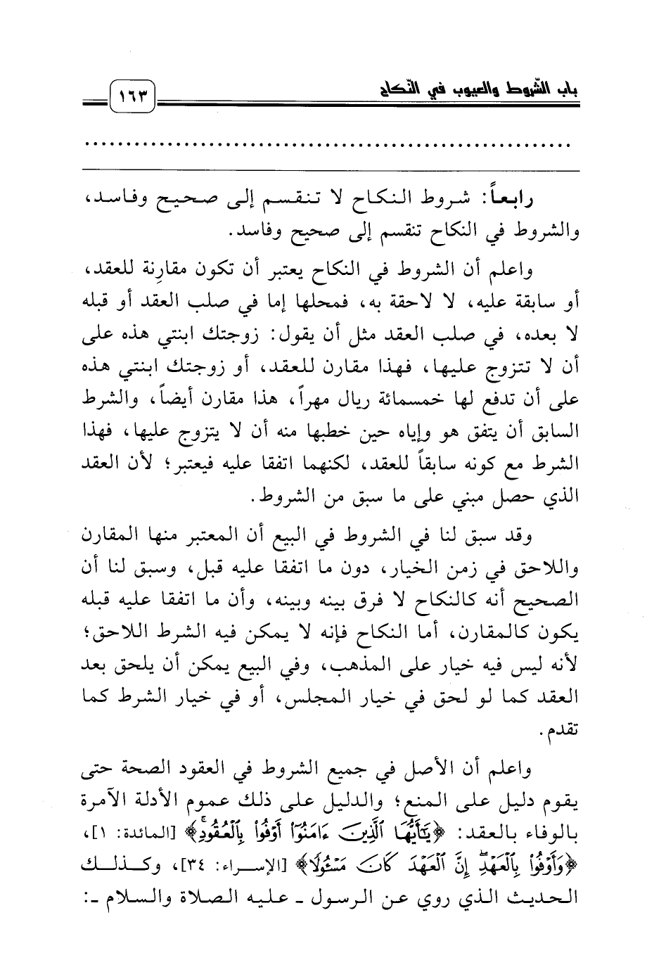 رابعاً: شروط النكاح لا تنقسم إلى صحيح وفاسد، والشروط في النكاح تنقسم إلى صحيح وفاسد.