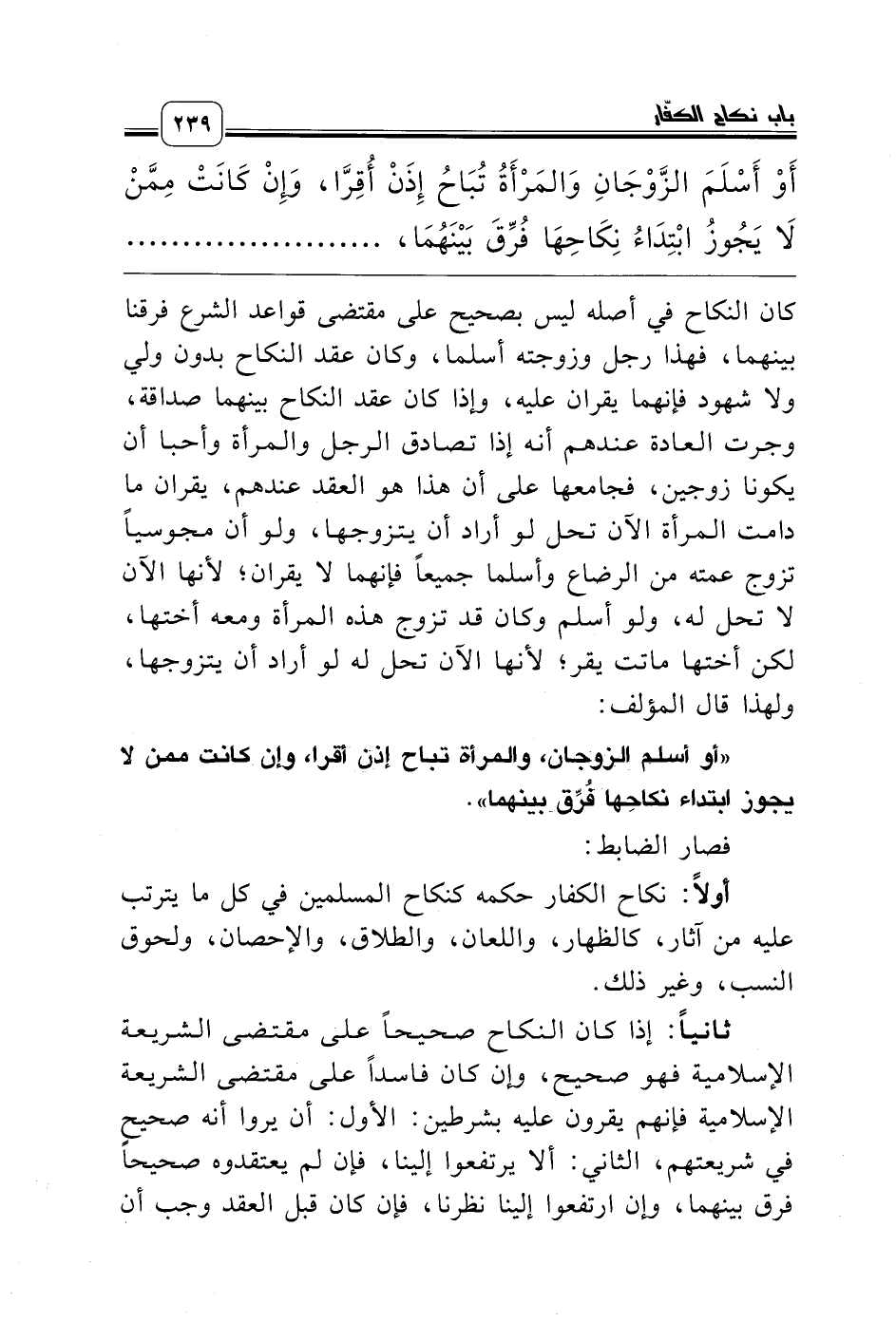 «أو أسلم الزوجان، والمرأة تباح إذن أقرا، وإن كانت ممن لا يجوز ابتداء نكاحِها فُرِّق بينهما».