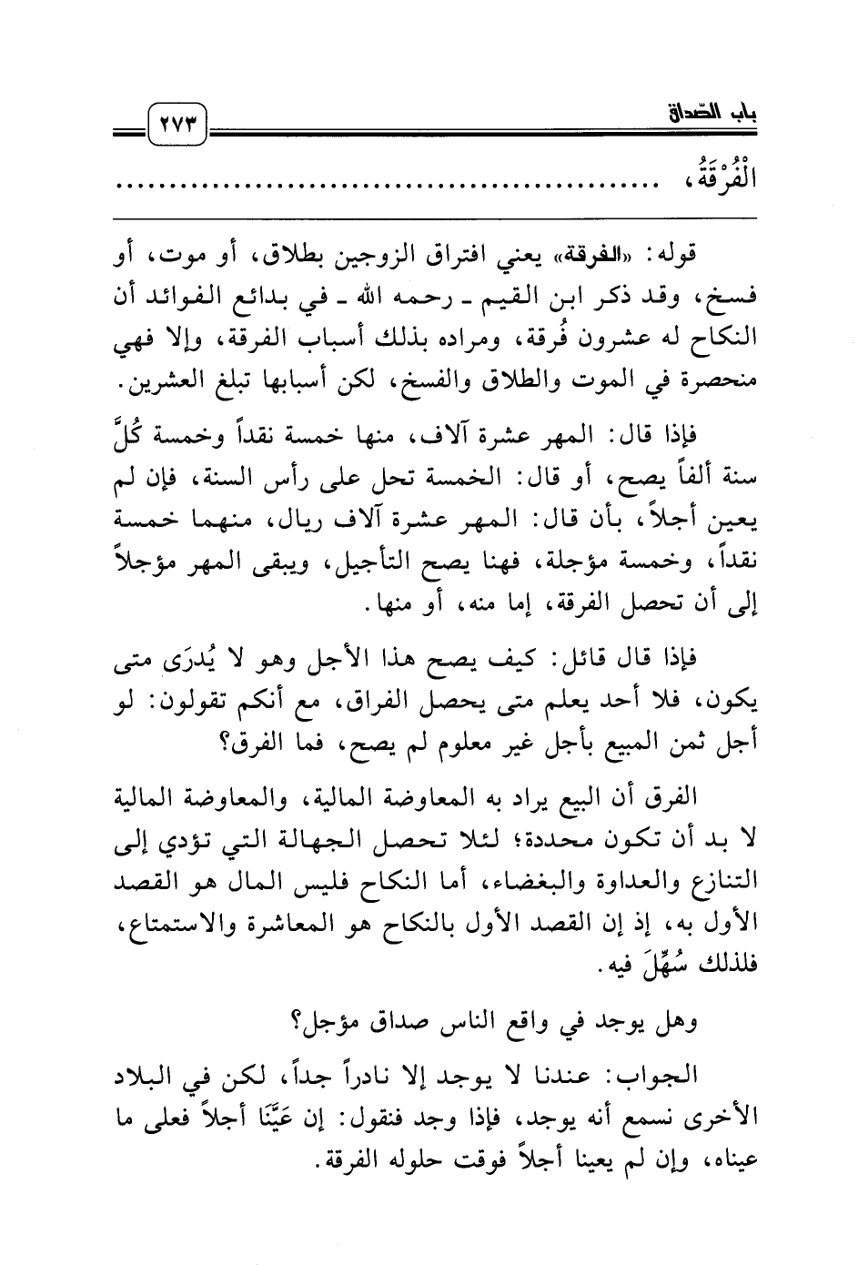 فإذا قال قائل: كيف يصح هذا الأجل وهو لا يُدرَى متى يكون، فلا أحد يعلم متى يحصل الفراق، مع أنكم تقولون: لو أجل ثمن المبيع بأجل غير معلوم لم يصح، فما الفرق؟