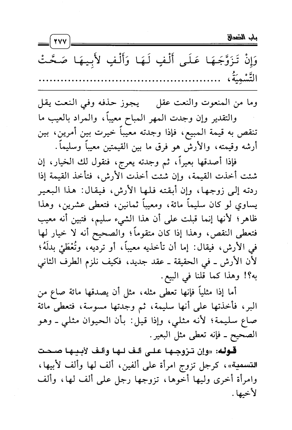 فإذا أصدقها بعيراً، ثم وجدته يعرج، فنقول لك الخيار، إن شئت أخذت القيمة، وإن شئت أخذت الأرش، فتأخذ القيمة إذا ردته إلى زوجها، وإن أبقته فلها الأرش، فيقال: هذا البعير يساوي لو كان سليماً مائة، ومعيباً ثمانين، فتعطى عشرين، وهذا ظاهر؛ لأنها إنما قبلت على أن هذا الشيء سليم، فتبين أنه معيب فتعطى النقص، وهذا إذا كان متقوماً؛ والصحيح أنه لا خيار لها في الأرش، فيقال: إما أن تأخذيه معيباً، أو ترديه، وتُعْطَيْ بدلَهُ؛ لأن الأرش ـ في الحقيقة ـ عقد جديد، فكيف نلزم الطرف الثاني به؟! وهذا كما قلنا في البيع.