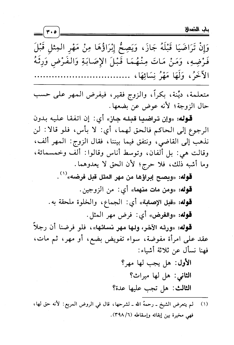 (¬1) لم يتعرض الشيخ ـ رحمه الله ـ لشرحها، قال في الروض المربع: لأنه حق لها، فهي مخيرة بين إبقائه وإسقاطه (6/ 398).