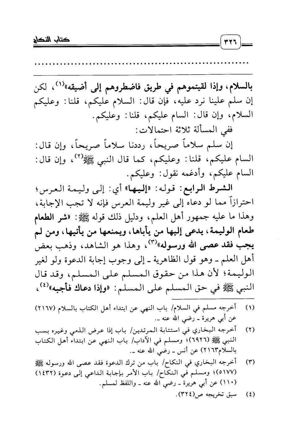 (¬3) أخرجه البخاري في النكاح/ باب من ترك الدعوة فقد عصى الله ورسوله صلّى الله عليه وسلّم (5177)؛ ومسلم في النكاح/ باب الأمر بإجابة الداعي إلى دعوة (1432) (110) عن أبي هريرة ـ رضي الله عنه ـ واللفظ لمسلم.