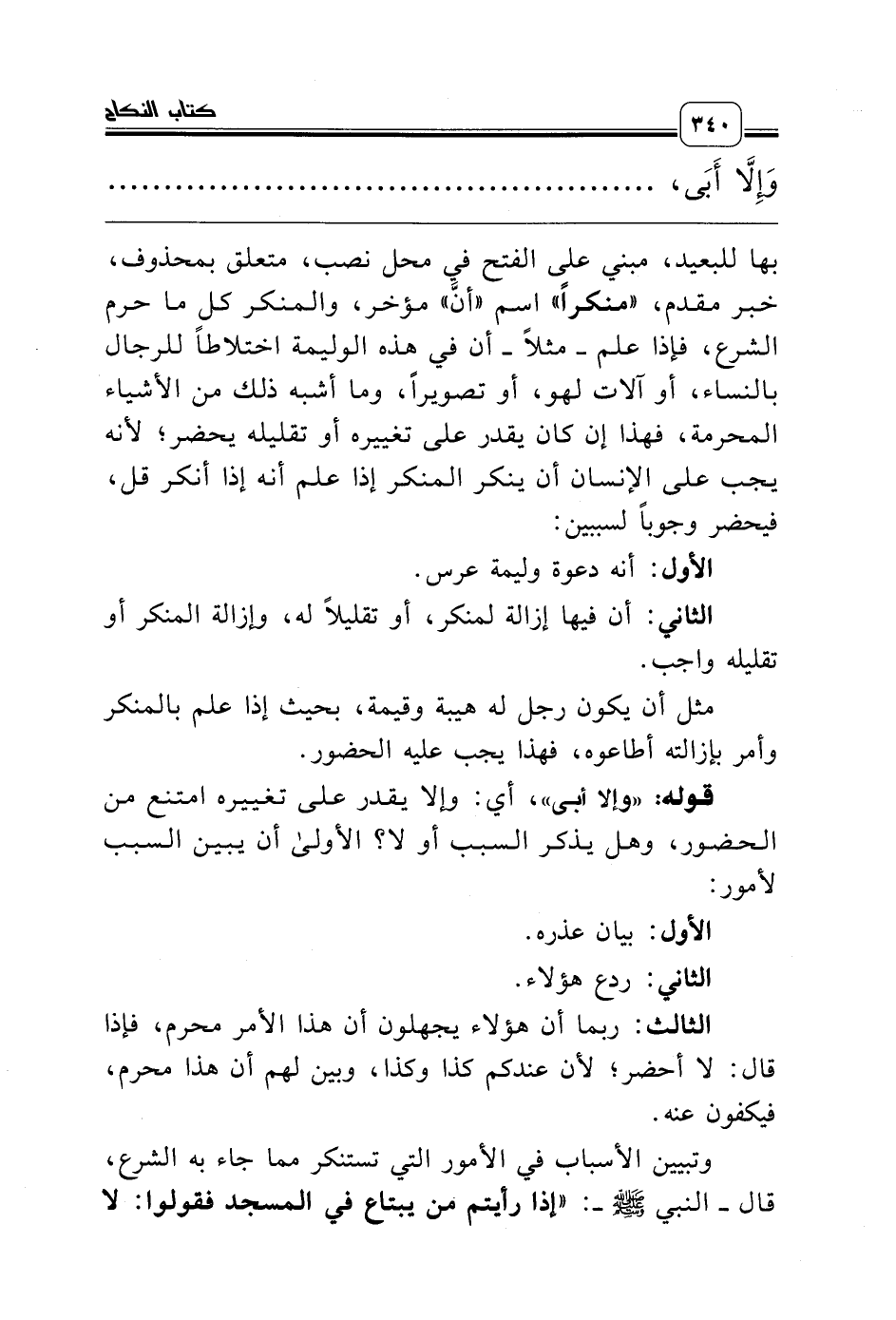 وتبيين الأسباب في الأمور التي تستنكر مما جاء به الشرع، قال ـ النبي صلّى الله عليه وسلّم ـ: «إذا رأيتم من يبتاع في المسجد فقولوا: لا