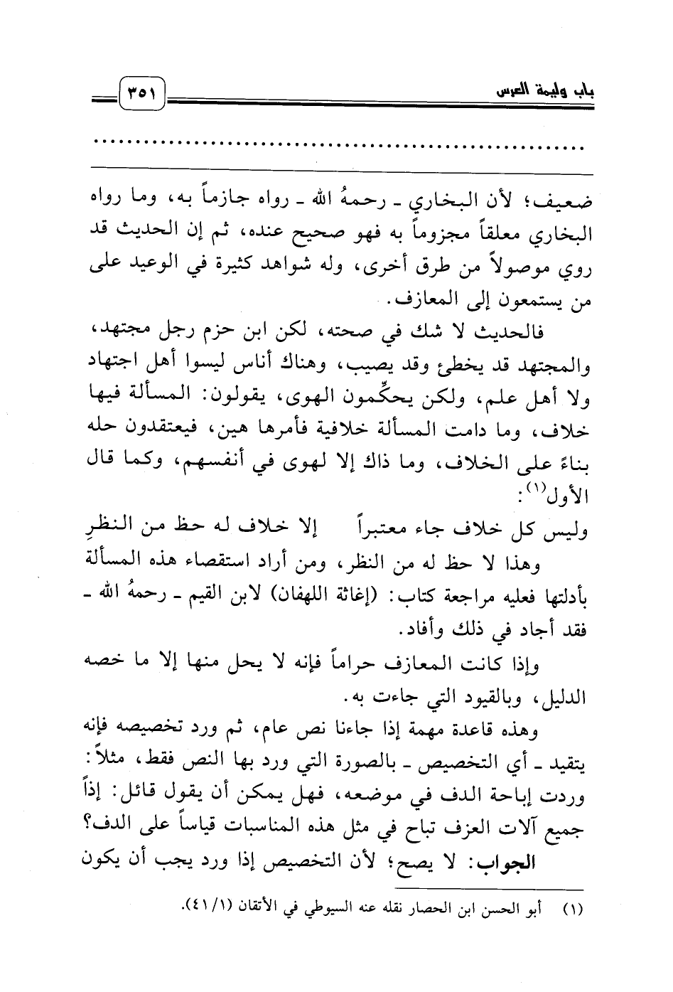 فالحديث لا شك في صحته، لكن ابن حزم رجل مجتهد، والمجتهد قد يخطئ وقد يصيب، وهناك أناس ليسوا أهل اجتهاد ولا أهل علم، ولكن يحكِّمون الهوى، يقولون: المسألة فيها خلاف، وما دامت المسألة خلافية فأمرها هين، فيعتقدون حله بناءً على الخلاف، وما ذاك إلا لهوى في أنفسهم، وكما قال الأول (¬1):
