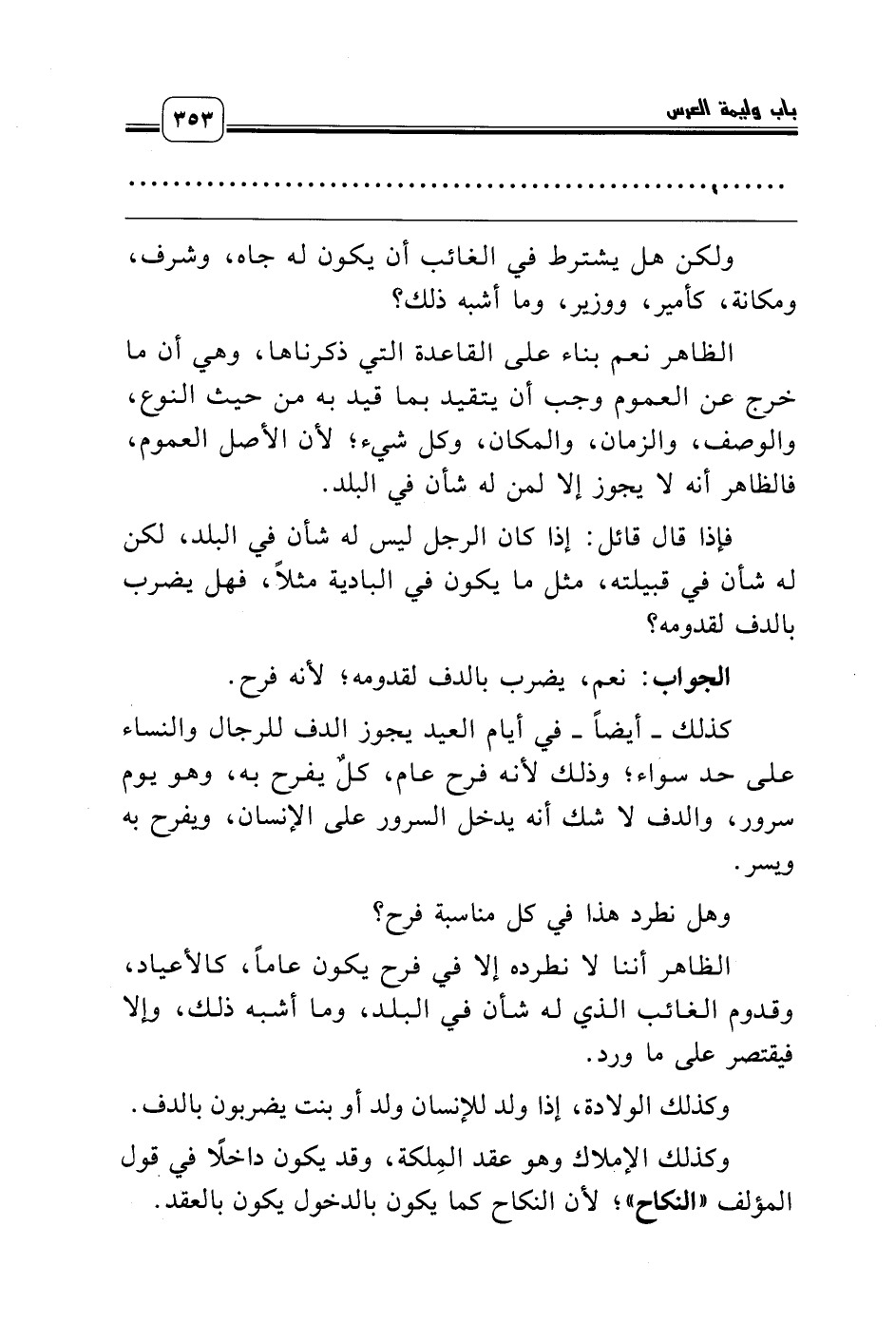 فإذا قال قائل: إذا كان الرجل ليس له شأن في البلد، لكن له شأن في قبيلته، مثل ما يكون في البادية مثلاً، فهل يضرب بالدف لقدومه؟