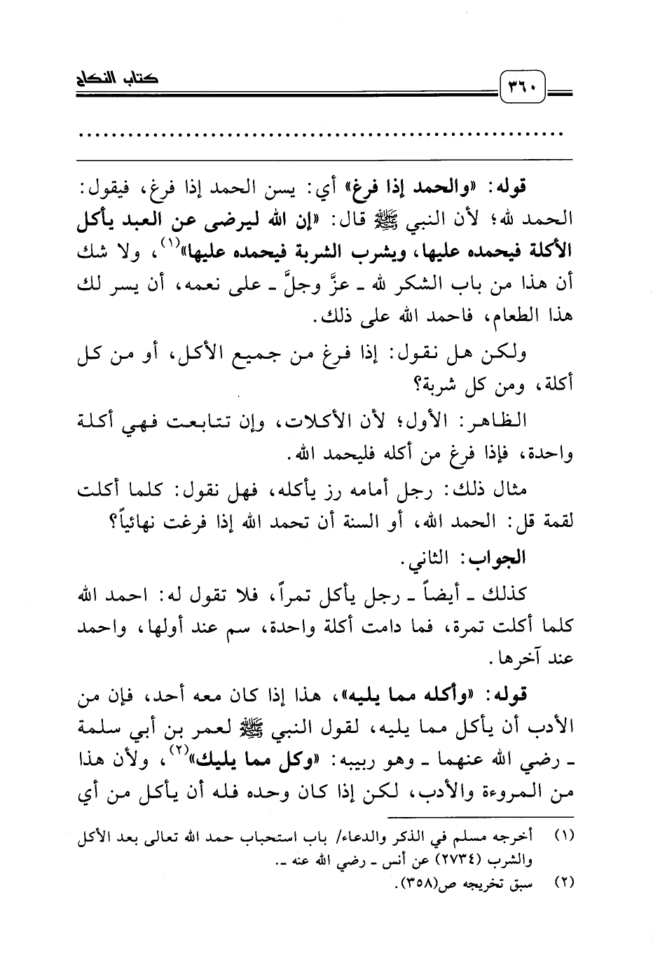 (¬1) أخرجه مسلم في الذكر والدعاء/ باب استحباب حمد الله تعالى بعد الأكل والشرب (2734) عن أنس ـ رضي الله عنه ـ.