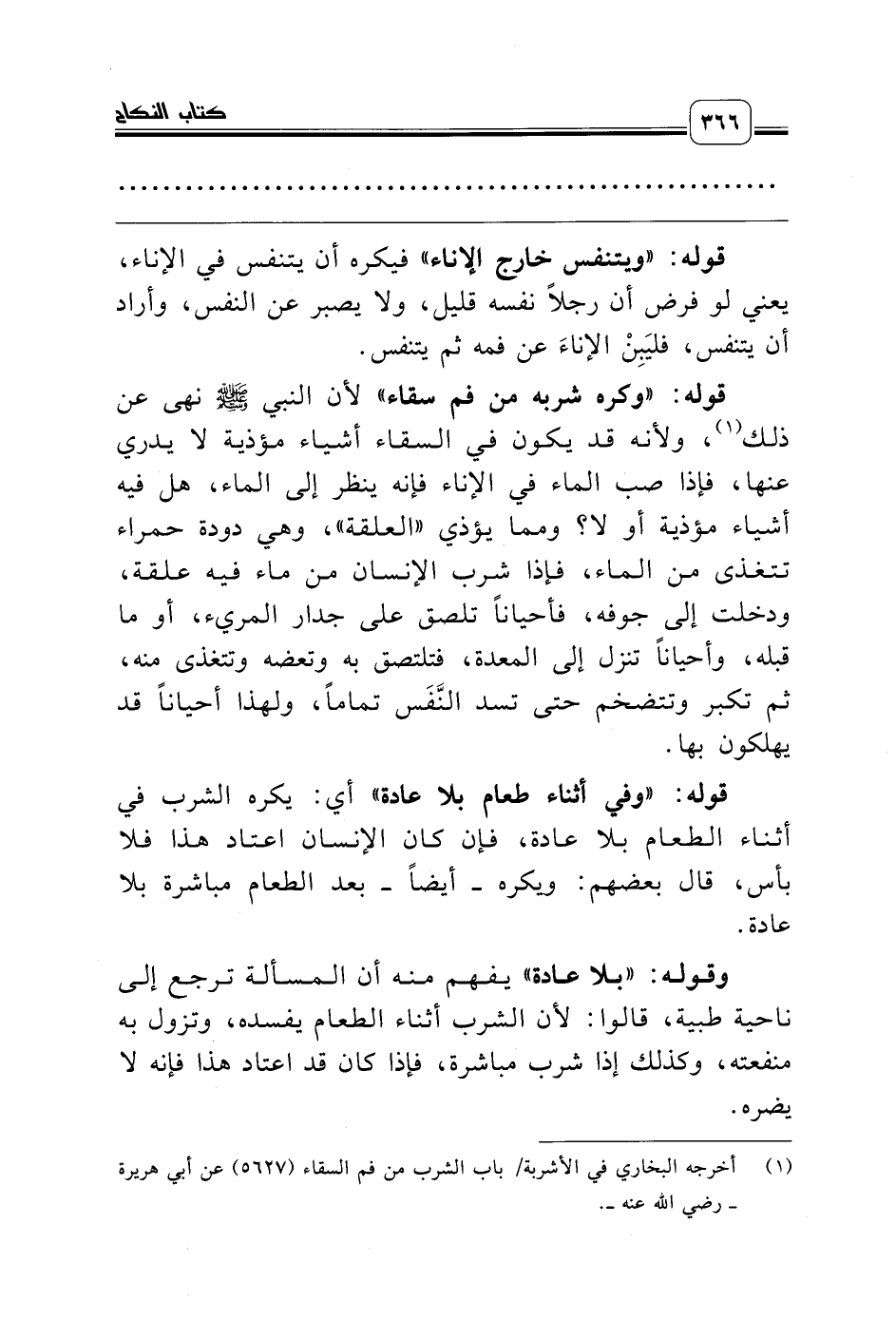 (¬1) أخرجه البخاري في الأشربة/ باب الشرب من فم السقاء (5627) عن أبي هريرة ـ رضي الله عنه ـ.