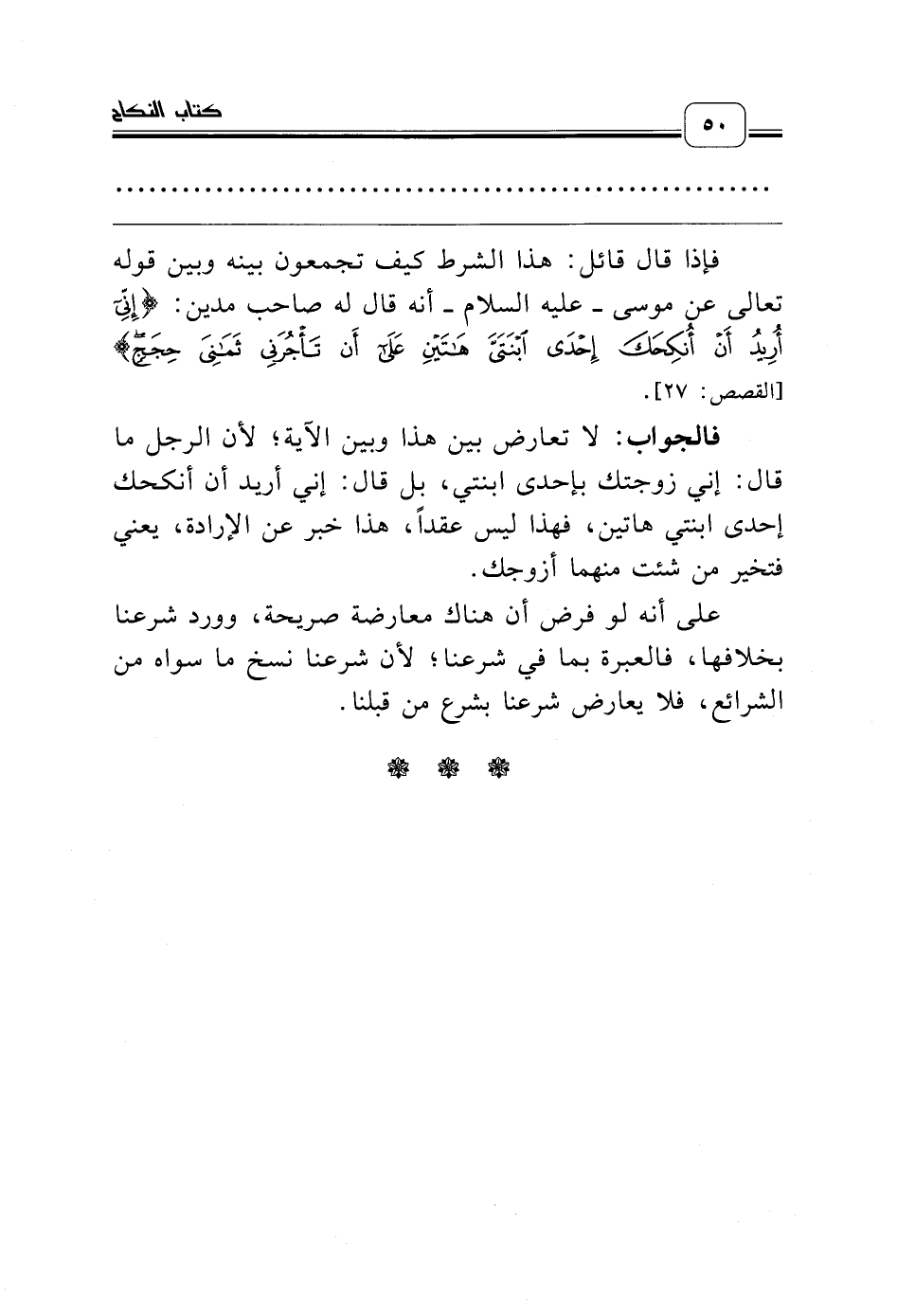 فالجواب: لا تعارض بين هذا وبين الآية؛ لأن الرجل ما قال: إني زوجتك بإحدى ابنتي، بل قال: إني أريد أن أنكحك إحدى ابنتي هاتين، فهذا ليس عقداً، هذا خبر عن الإرادة، يعني فتخير من شئت منهما أزوجك.