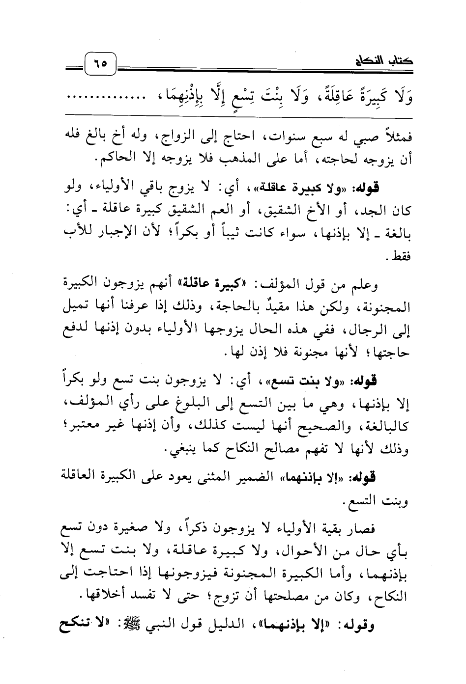 قوله: «إلا بإذنهما» الضمير المثنى يعود على الكبيرة العاقلة وبنت التسع.