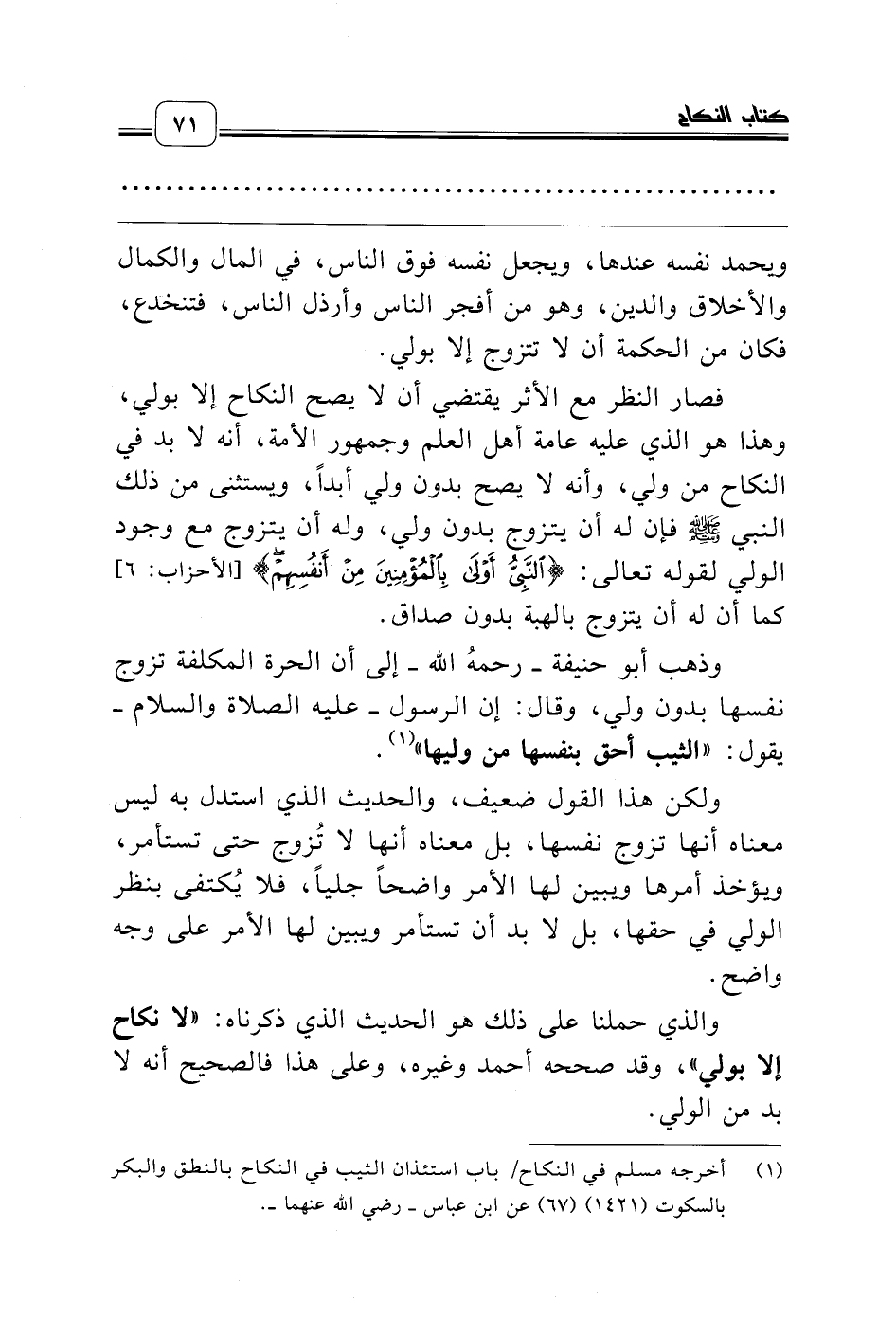 (¬1) أخرجه مسلم في النكاح/ باب استئذان الثيب في النكاح بالنطق والبكر بالسكوت (1421) (67) عن ابن عباس ـ رضي الله عنهما ـ.