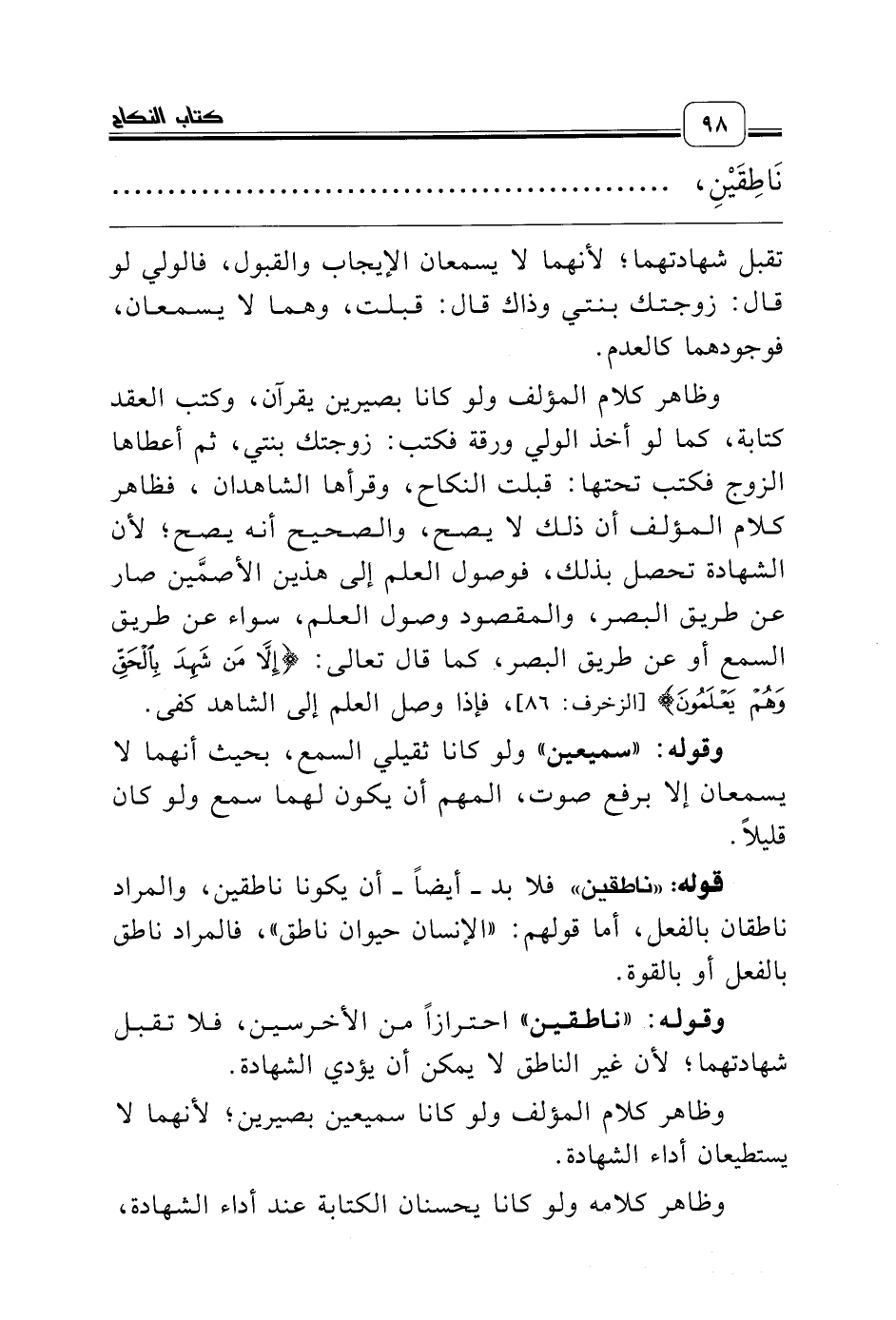 وقوله: «ناطقين» احترازاً من الأخرسين، فلا تقبل شهادتهما؛ لأن غير الناطق لا يمكن أن يؤدي الشهادة.