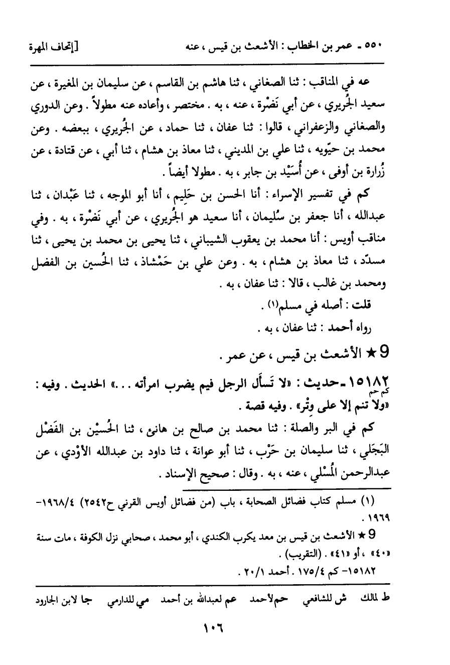 15182 - حديث (كم حم) : "لا تَسأَل الرجل فيم يضرب امرأته ... " الحديث. وفيه: "ولا تنم إلا على وِتْر". وفيه قصة.