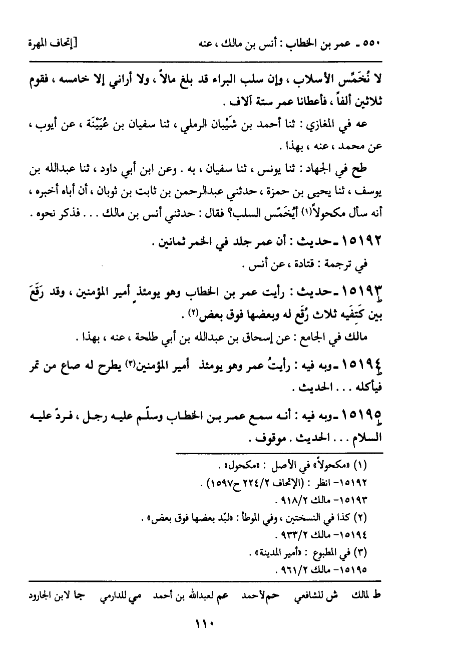 15195 - وبه فيه (ط) : أنه سمع عمر بن الخطاب وسلّم عليه رجل، فردّ عليه السلام ... الحديث. موقوف.
