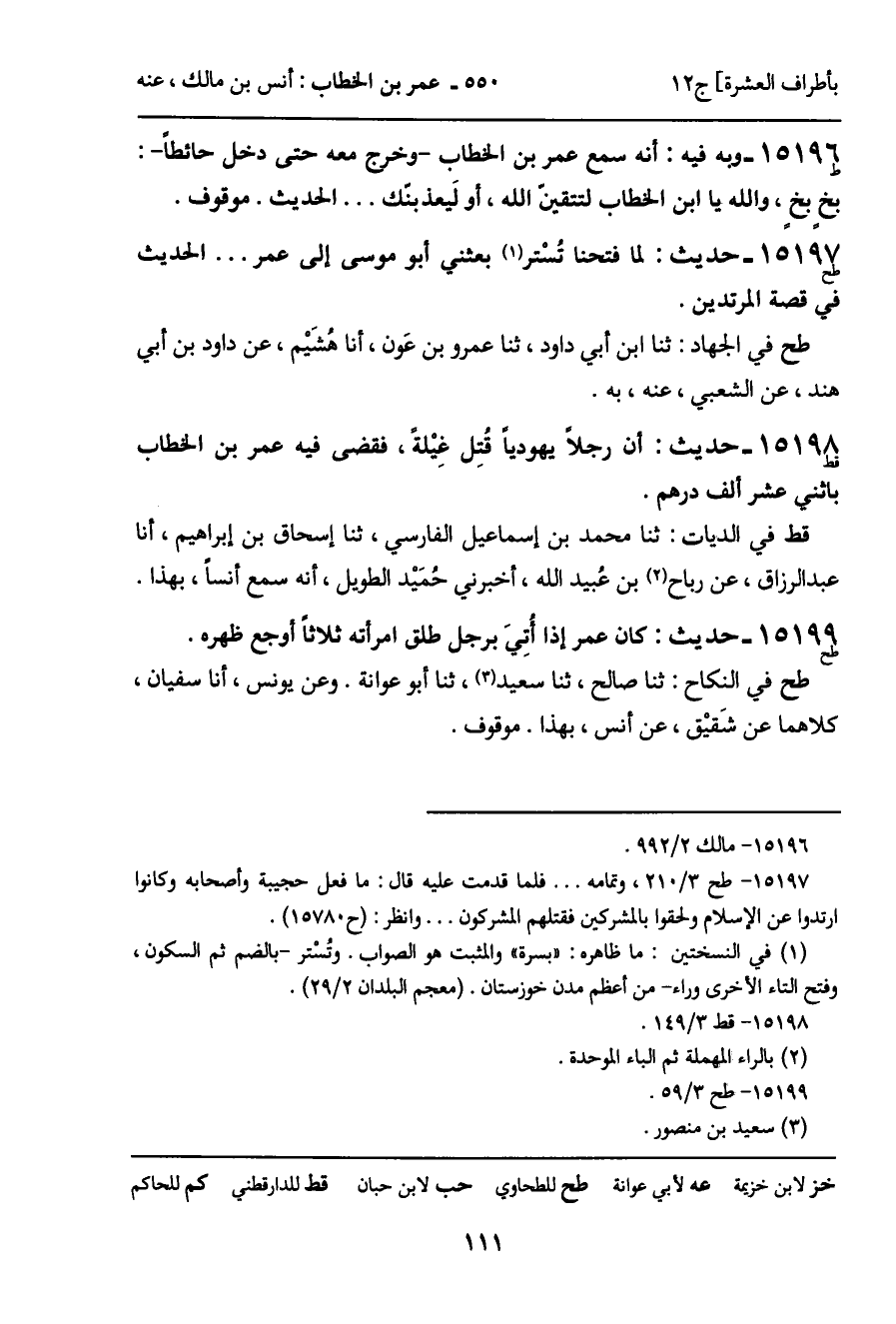 15197 - حديث (طح) : لما فتحنا تستر بعثني أبو موسى إلى عمر ... الحديث في قصة المرتدين.