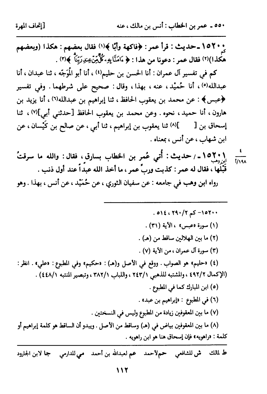 كم في تفسير آل عمران: أنا الحسن بن حليم، أنا أبو المُوَجْه، ثنا عبدان، أنا عبد الله، أنا حُميْد، عنه، بهذا، وقال: صحيح على شرطهما. وفي تفسير (عبس) : عن محمد بن يعقوب الحافظ، ثنا إبراهيم بن عبد الله، أنا يزيد بن هارون، أنا حميد، نحوه. وعن محمد بن يعقوب الحافظ [حدثني أبي] ، ثنا إسحاق بن [] ثنا يعقوب بن إبراهيم، ثنا أبي، عن صالح بن كيَسان، عن ابن شهاب، عن أنس، بمعناه.