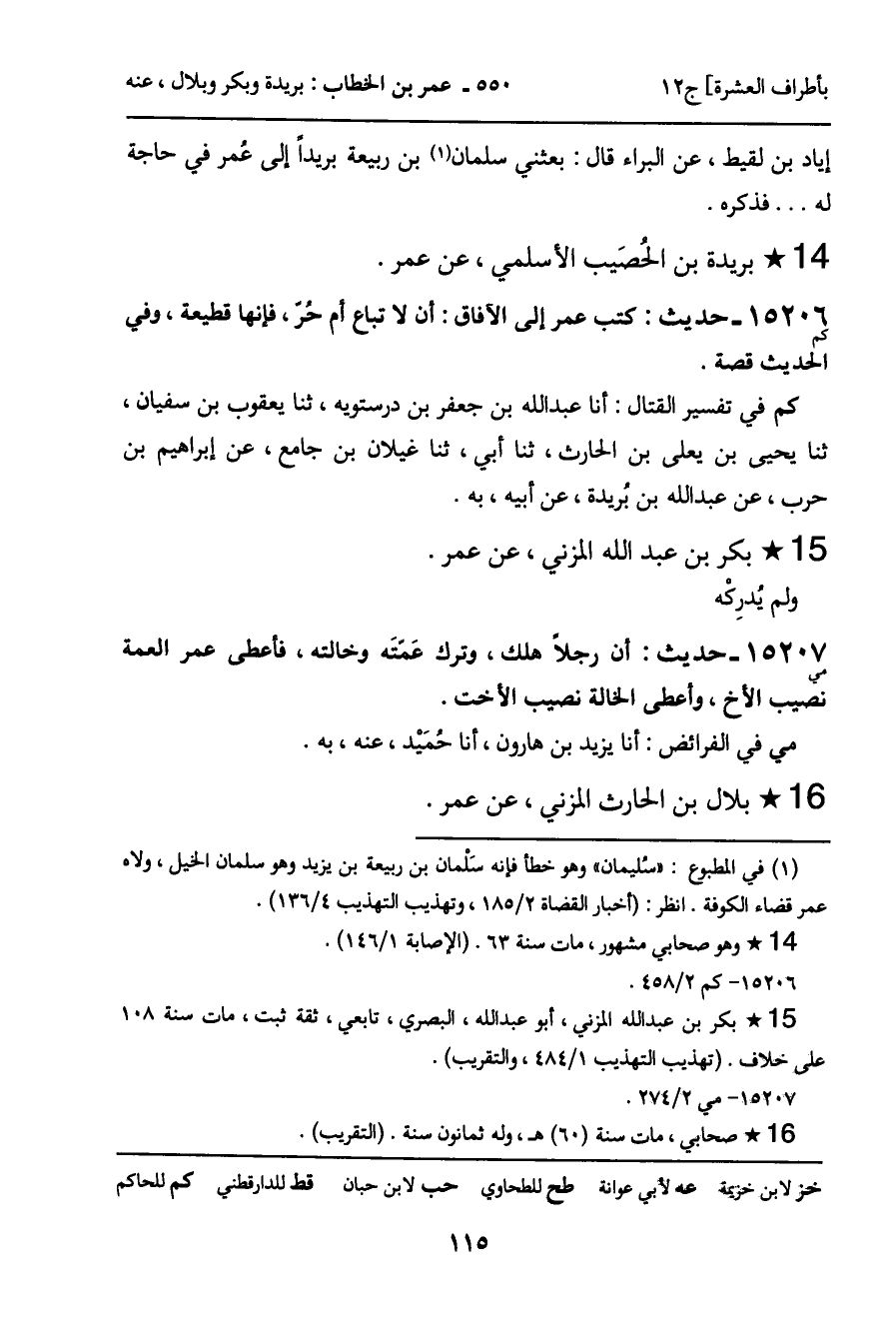 15206 - حديث (كم) : كتب عمر إلى الآفاق: أن لا تباع أم حُرْ، فإنها قطيعة، وفي الحديث قصة.