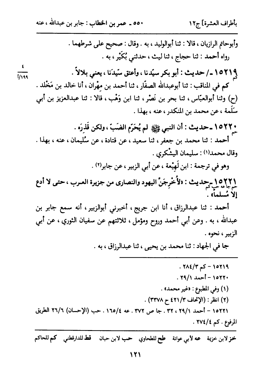 15221 - حديث (حم جا عه حب كم) : "لأُخْرجَن اليهود والنصارى من جزيرة العرب، حتى لا أدع إلا مُسلماً".