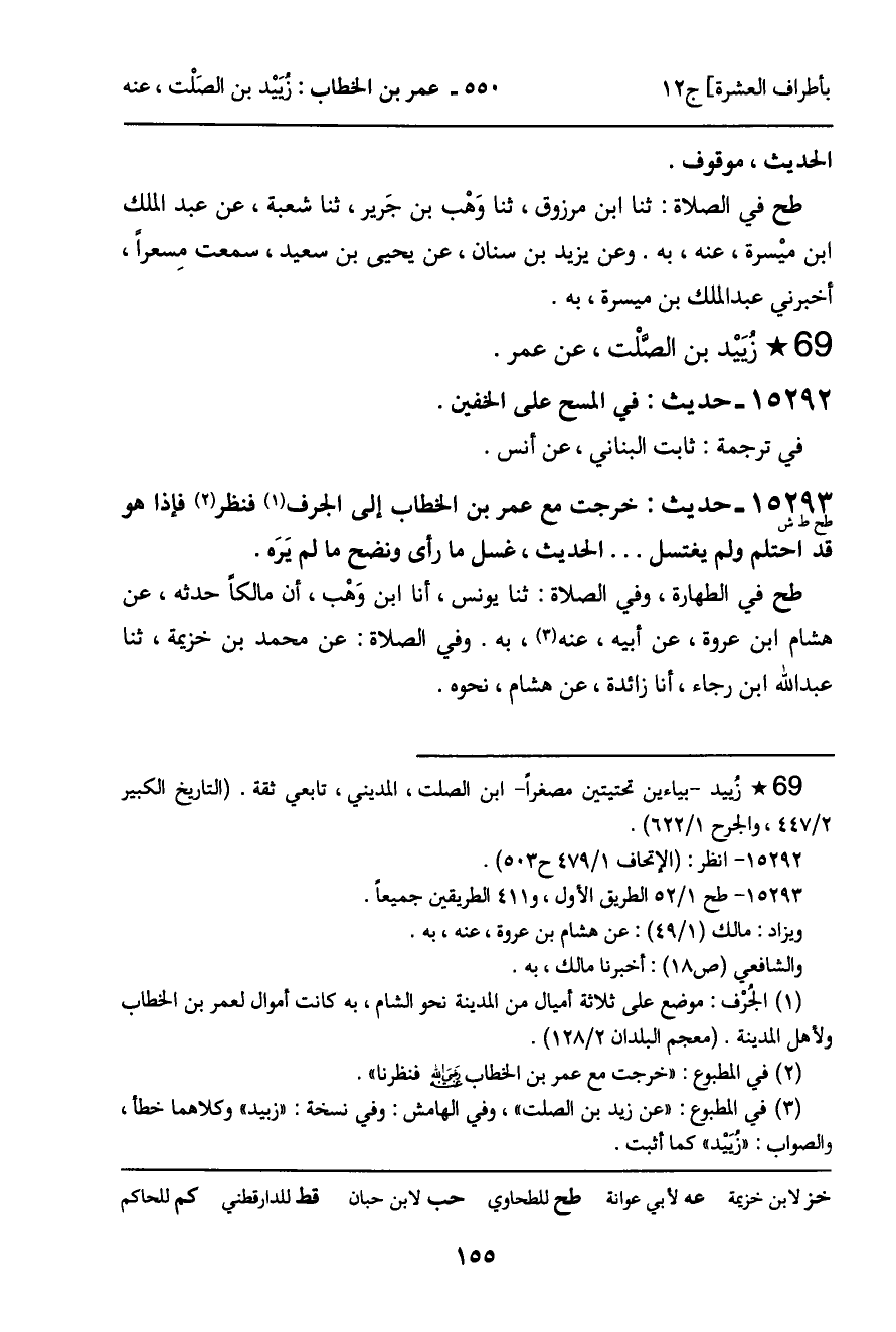 طح في الطهارة، وفي الصلاة: ثنا يونس، أنا ابن وَهْب، أن مالكاً حدثه، عن هشام ابن عروة، عن أبيه، عنه، به. وفي الصلاة: عن محمد بن خزيمة، ثنا عبد الله ابن رجاء، أنا زائدة، عن هشام، نحوه.