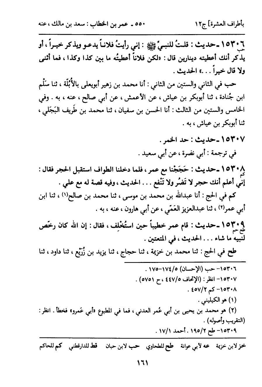 15308 - حديث (كم) : حَجَجْنا مع عمر، فلما دخلنا الطواف استقبل الحجر فقال: إني أعلم أنك حجر لا تَضُر ولا تَنْفع ... الحديث، وفيه قصة له مع علي.