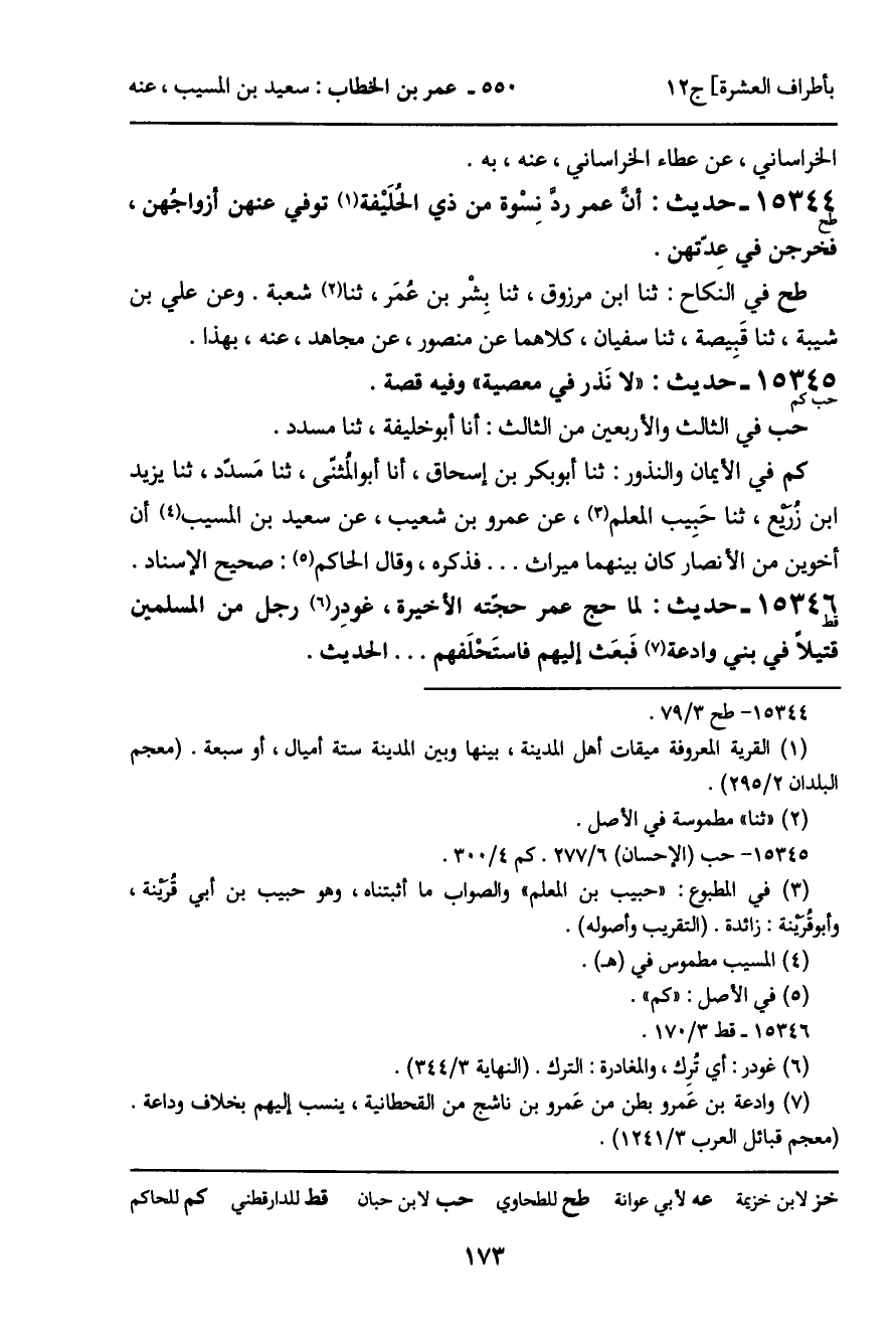 15344 - حديث (طح) : أن عمر ردَّ نسْوة من ذي الحُلَيْفة توفي عنهن أزواجهن، فخرجن في عِدّتهن.