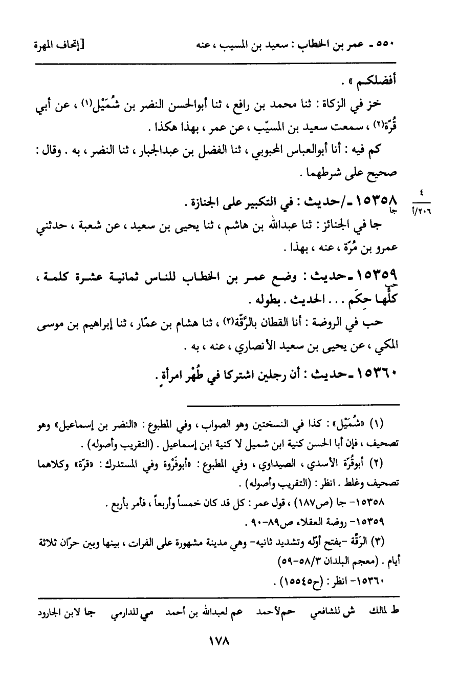 15359 - حديث (حب) : وضع عمر بن الخطاب للناس ثمانية عشرة كلمة، كلُّها حِكَم ... الحديث. بطوله.