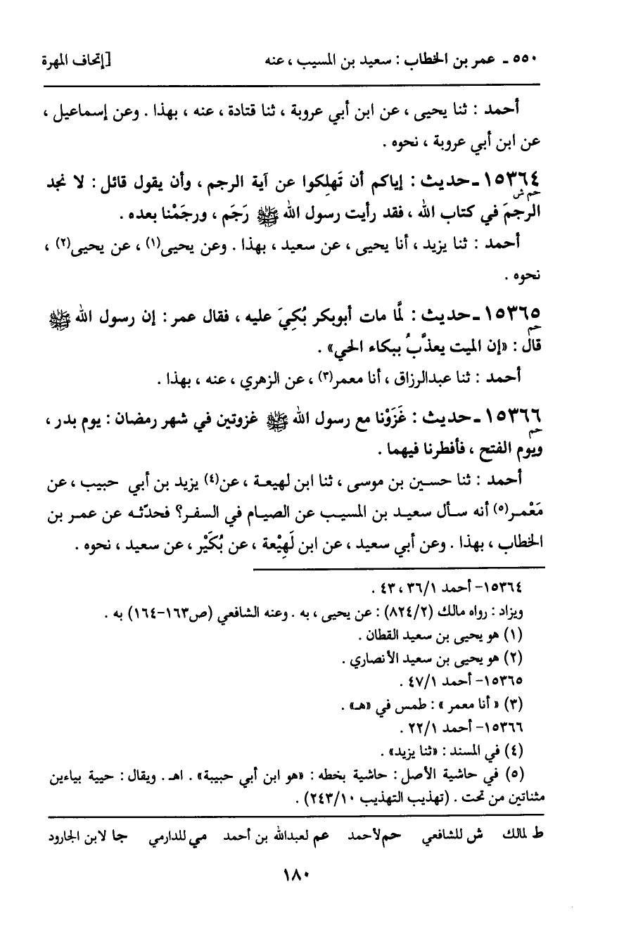 أحمد: ثنا حسين بن موسى، ثنا ابن لهيعة، عن يزيد بن أبي حبيب، عن مَعْمر أنه سأل سعيد بن المسيب عن الصيام في السفر؟ فحدّثه عن عمر بن الخطاب، بهذا. وعن أبي سعيد، عن ابن لَهِيْعة، عن بُكَيْر، عن سعيد، نحوه.