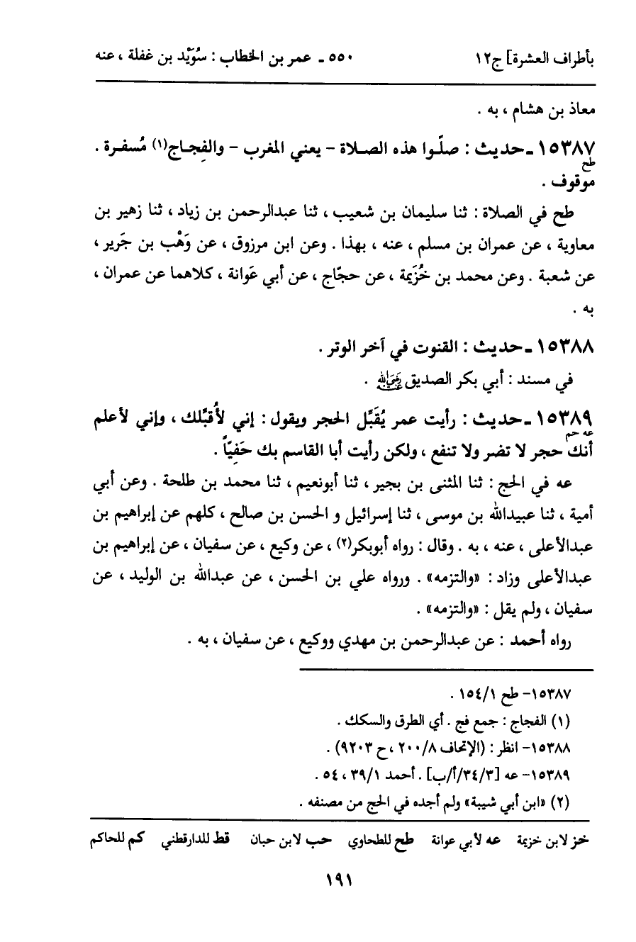 عه في الحج: ثنا المثنى بن بجير، ثنا أبو نعيم، ثنا محمد بن طلحة. وعن أبي أمية، ثنا عبيد الله بن موسى، ثنا إسرائيل والحسن بن صالح، كلهم عن إبراهيم بن عبد الأعلى، عنه، به. وقال: رواه أبو بكر، عن وكيع، عن سفيان، عن إبراهيم بن عبد الأعلى وزاد: "والتزمه". ورواه علي بن الحسن، عن عبد الله بن الوليد، عن سفيان، ولم يقل: "والتزمه".